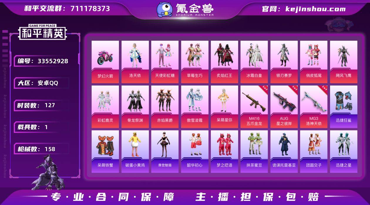 YZJ15138-可二次 安卓Q-【精品小女号 满级五爪 满级AUG彼岸 美雪 洛天依 樱桃 白勺 呆萌 鹿灵 狐尾 绒雪飘舞 傲雪凌霜 糖霜甜心 摩登魅猫 】1稀有1载具19粉装3特效枪18热门127套装158枪皮 61308热力值 4印记 历史超级王牌11星 【1稀有】 S1赛事外套 【1载具】 双人摩托梦幻火箭 【19粉装】 奇迹舞步美雪 天使彩虹糖 洛天依 樱桃泡泡 白勺歌姬 呆萌星弥 草莓生巧 俏皮狐尾 冰霜白皇 绒雪飘舞 炙焰红王 傲雪凌霜 银刃赛罗 飓风飞鹰 赤焰黑爵 焰龙焚天 骨龙祭渊 暗夜玫瑰 彩虹鹿灵 【3特效枪】 M416-五爪金龙 (7级) AUG-星之彼岸 (7级) MG3-洛神天依 (7级) 【18热门】 呆萌铁蟹 迅捷狂鲨 梦起落英 团圆交子 瑞龙福将 冰爽海盐 梦之呓语 韶华初心 薄荷蓝莓 抹茶蜜豆 破蛋小黄鸡 Kar98K-终极赛罗 M762-瑞龙福将 M24-奇异狩猎者 M24-香水柠檬 Mini14-林间仙鹿 汤姆逊-林间仙鹿 GROZA-林间仙鹿 【5飞行器】 锦绣火鲤飞行器 夏日绵绵冰飞行器 梦幻火箭飞行器 阿狸红飞行器 绮梦青鸾飞行器 【2头盔】 梦幻火箭头盔 夏日绵绵冰头盔 【3背包】 梦幻火箭背包 甜心宝贝背包 夏日绵绵冰背包 营地ID:480587033