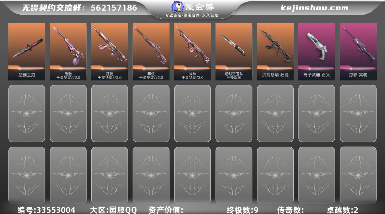 【三棱军刺.莲花2.0套装.怜悯之刃.流脓.掠夺狙.离子正义】YXy6485【无二次】【因赛季更新游戏段付以上号为准!】 【套装】:无畏契约季前邀请赛套装,千灵华绽//2.0套装 【英雄】:炼狱,暮蝶,钛狐,壹决,铁臂,捷风,幽影,不死鸟,贤者,猎枭,芮娜,尚勃勒,霓虹,K/O,黑梦,钢锁 【近战武器】:近战武器-碎心裂刃,近战武器-无畏契约季前邀请赛 悲悯之刃,近战武器-流风回雪,近战武器-超时空卫队 三棱军刺 【狂徒】:狂徒-洪荒怒焰,狂徒-千灵华绽//2.0 【冥驹】:冥驹-掠影 【莽侠】:莽侠-千灵华绽//2.0 【战神】:战神-千灵华绽//2.0 【正义】:正义-离子武器 【鬼魅】:鬼魅-千灵华绽//2.0 【卡面】:激斗汉堡 卡面,无畏契约GO!第一卷:芮娜 卡面,无畏契约GO!第一卷:零 卡面,《双城之战》金克丝 卡面,代号红色 卡面,新兵报到 卡面,V契约 卡面,无畏契约 卡面 【喷漆】:霓光四射 喷漆,买装还是存钱 喷漆,关门放狗 喷漆,胜利属于无畏契约 喷漆,GLHF 喷漆,无畏契约 喷漆 【挂饰】:无畏契约GO!第一卷 零 挂饰,天外飞客 挂饰,无畏契约 纪念币 挂饰