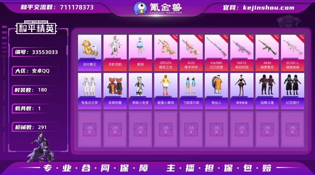 YZJ15919-可二次 安卓Q-4稀有1载具7粉装12特效枪10热门180套装291枪皮 84013热力值 精品女身法号 地铁满天赋 4词条MG36 狗砸精灵之光 第五大道 美琪 炫光之旅 月影灵韵 浅蓝色牛仔衬衣 金鞋 权威小菠萝 奇异狩猎者 粉螳螂 兔兔白日梦 银碳小老虎 神秘黑猫 暮色幽蹄 满级M4电玩 满级AUG暖羊 10印记 历史卓越王牌12星 【4稀有】 奇异狩猎者 AKM-缤纷海域 派对舞王 派对舞王(金靴子) 【1载具】 暮色幽蹄 【7粉装】 美琪 异瞳寒姬 月影灵韵 炫光之旅 守护天翼 幻彩电音 第五大道 【12特效枪】 SCAR-L-锦绣绵绵 (5级) M416-电玩时刻 (5级) AKS-74U-森灵之息 (5级) AKM-绿萝繁花 (5级) Kar98K-巳巳如意 (5级) DP-28-豹影疾电 (5级) AUG-暖羊咩咩 (5级) AMR-智耀战神 (7级) AMR-炫光之旅 (7级) GROZA-精灵之光 (2级) Mk14-福马献瑞 (5级) UMP45-萌骑冒险 (3级) 【10热门】 8号机 小丑鱼 龟仙人 呆萌铁蟹 兔兔白日梦 银碳小老虎 神秘黑猫 破蛋小黄鸡 弄潮海豚 S686-奇异狩猎者 【1头盔】 深海小丑鱼头盔 【1背包】 深海小丑鱼背包 营地ID:902773829