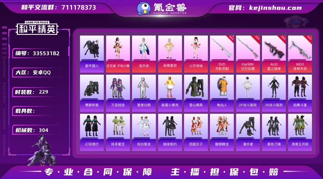 YZJ16498-可二次-安卓Q-1稀有11粉装9特效枪20热门229套装304枪皮 93446热力值 极品小女号 地铁满天赋 259扭蛋碎片未使用 6级AUG星之彼岸 5级MG3洛神天依 洛天依 不知火舞 白勺 呆萌 小可 镜中幻 萌物绒绒 樱桃泡泡 都市 阳光菠萝 碟中谍A款上衣 2P小姐姐 细狗申公豹 爱崽白熊 万圣娃娃 神秘黑猫 纯白誓言 9印记 历史卓越王牌6星 【1稀有】 都市猎人 【11粉装】 狂花道·不知火舞 洛天依 镜中幻 花灵 樱桃泡泡 白勺歌姬 呆萌星弥 小可学妹 萌物绒绒 星之彼岸 天之羽翼 【9特效枪】 AKS-74U-森灵之息 (5级) Kar98K-巳巳如意 (5级) DP-28-豹影疾电 (5级) SVD-月影灵韵 (7级) AUG-星之彼岸 (6级) MG3-洛神天依 (5级) Mk14-福马献瑞 (5级) UMP45-萌骑冒险 (3级) ACE32-萌骑漫游 (5级) 【20热门】 碟中谍A款上衣 龟仙人 2B战斗服款 2P战斗服款 雪山精英 爱崽白熊 万圣娃娃 鹰眼刺客 神秘黑猫 暗夜契约 醒狮腾龙 团圆交子 瑞龙福将 纯白誓言 漫步者 抹茶蜜豆 破蛋小黄鸡 黑色刀锋 极速红龙 M762-瑞龙福将 【1飞行器】 萌物绒绒飞行器 【2头盔】 甜心宝贝头盔 甜蜜誓约头盔 【3背包】 折纸暴龙背包 神秘黑猫背包 甜蜜誓约背包 营地ID:721189106