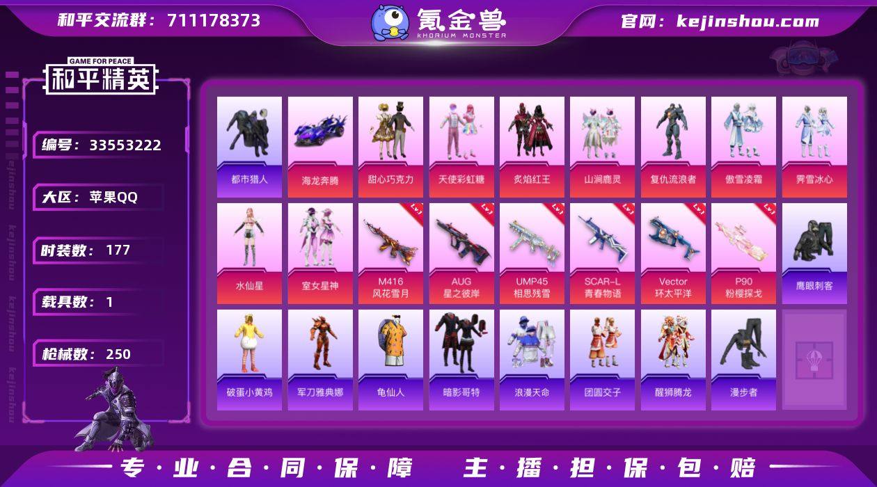 YZJ16958-不可二次-苹果Q-2稀有1载具17粉装11特效枪16热门177套装250枪皮 84396热力值 极品精氪身法号 地铁满天赋 觉醒紫螳螂 新火箭少女 甜心巧克力 幻影战神 莫吉托 傲雪凌霜 盖世英雄 都市 红眼罩 天命 AG战队服 满级M4风花雪月 6级斯嘎青春物语 6级UMP45相思残雪 满级维克多环太平洋 4级AUG星之彼岸 11印记 历史传奇王牌21星 【2稀有】 都市猎人 浪漫天命 【1载具】 海龙奔腾 【17粉装】 觉醒初号机 梦幻火箭 盖世英雄 水仙星 天使彩虹糖 甜心巧克力 幻影战神 室女星神 仲夏莫吉托 炙焰红王 霁雪冰心 傲雪凌霜 星之彼岸 山涧鹿灵 天之羽翼 复仇流浪者 海渊国主 【11特效枪】 AKS-74U-森灵之息 (5级) Mk14-爆裂游戏 (4级) AUG-星之彼岸 (4级) UMP45-相思残雪 (6级) P90-粉樱探戈 (5级) M416-风花雪月 (7级) 信号枪-金乌曜日 (2级) Mk14-福马献瑞 (2级) ACE32-萌骑漫游 (2级) Vector-环太平洋 (7级) SCAR-L-青春物语 (6级) 【16热门】 龟仙人 鹰眼刺客 AG战队服 暗影哥特 醒狮腾龙 团圆交子 瑞龙福将 漫步者 冰爽海盐 青龙圣者 娴静芝兰 破蛋小黄鸡 军刀雅典娜 英勇保护者 M762-瑞龙福将 汤姆逊-林间仙鹿 【4飞行器】 梦幻火箭飞行器 黄族统领飞行器 绒雪飘舞飞行器 庄周梦...