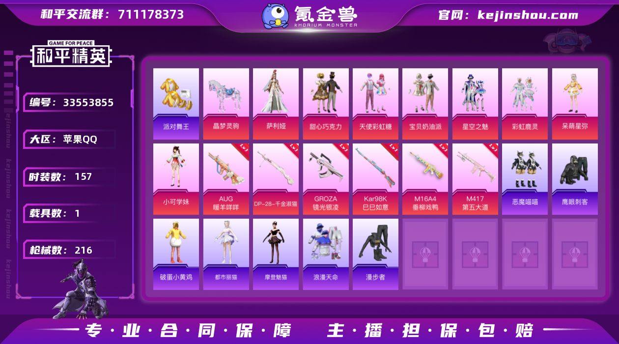YZJ16264-可二次-苹果Q-3稀有1载具18粉装11特效枪8热门157套装216枪皮 66041热力值 极品公主号 地铁满天赋 300多天精英特权卡 巧克力三姐妹 猪妹 千金淑猫 第五大道 暖熊萌萌 樱桃泡泡 呆萌星弥 小可学妹 美雪 小舞灵珑 彩虹鹿灵 权威小番茄 金鞋 权威小菠萝 兔兔小魔女 晶辉眼罩 美羊羊 懒羊羊 粉水晶马 灵珠宝驹伙伴 10印记 历史绝世王牌22星 【3稀有】 浪漫天命 派对舞王 派对舞王(金靴子) 【1载具】 晶梦灵驹 【18粉装】 萨利娅 奇迹舞步美雪 绯穹魔姬 宝贝奶油派 天使彩虹糖 甜心巧克力 小舞灵珑 千金淑猫 樱桃泡泡 冷漠罗丽 呆萌星弥 小可学妹 霁蓝缠春 缤纷油彩 第五大道 星空之魅 暖熊萌萌 彩虹鹿灵 【11特效枪】 Kar98K-巳巳如意 (5级) DP-28-千金淑猫 (5级) DP-28-豹影疾电 (5级) AUG-暖羊咩咩 (5级) AMR-智耀战神 (6级) GROZA-镜光银凌 (5级) M417-第五大道 (2级) M16A4-垂柳戏鸭 (5级) 信号枪-金乌曜日 (3级) Mk14-福马献瑞 (5级) UMP45-萌骑冒险 (3级) 【8热门】 小丑鱼 红熊茄茄 兔兔小魔女 晶辉守护 鹰眼刺客 恶魔喵喵 漫步者 破蛋小黄鸡 【3头盔】 童趣迷兔头盔 甜心宝贝头盔 深海小丑鱼头盔 【2背包】 甜心宝贝背包 深海小丑鱼背包 营地ID:979533708