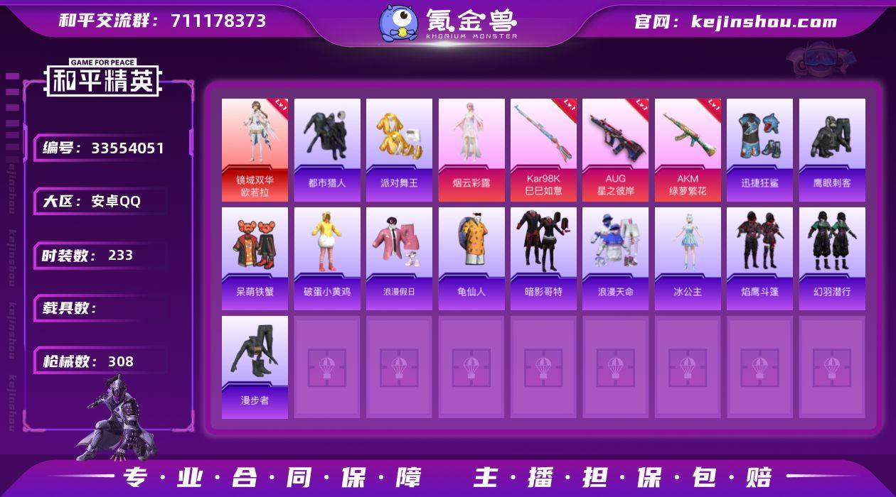 YZJ15972 可二次 安卓Q-【红装身法素材号 特权卡至27年 地铁满天赋 4级欧若拉 新火箭少女 都市 金鞋 浅蓝色牛仔衬衣[牛仔外套] 小舞 许褚 深海小丑鱼 小丑鱼 艾伦沃克 红眼罩 蜘蛛侠 浪漫天命】1红装7稀有7粉装7特效枪15热门233套装308枪皮 91658热力值 20印记 历史超级王牌19星 【1红装】 镜域双华-欧若拉 (4级) 【7稀有】 奇异狩猎者 AWM-黄金龙骨 AKM-缤纷海域 都市猎人 浪漫天命 派对舞王 派对舞王(金靴子) 【7粉装】 罪夜之冕 梦幻火箭 小舞雪昙 虎痴许褚 烟云彩露 暗夜鎏金 星之彼岸 【7特效枪】 AKS-74U-森灵之息 (5级) AKM-绿萝繁花 (5级) Kar98K-巳巳如意 (5级) DP-28-豹影疾电 (5级) AUG-星之彼岸 (7级) Mk14-福马献瑞 (4级) ACE32-萌骑漫游 (4级) 【15热门】 小丑鱼 龟仙人 浪漫假日 呆萌铁蟹 鹰眼刺客 迅捷狂鲨 深海小丑鱼 暗影哥特 漫步者 破蛋小黄鸡 极速红龙 M416-快乐主宰 M762-奇异狩猎者 M24-奇异狩猎者 S686-奇异狩猎者 【1飞行器】 梦幻火箭飞行器 【4头盔】 梦幻火箭头盔 百万伏特头盔 深海小丑鱼头盔 金羽特工头盔 【2背包】 深海小丑鱼背包 金羽特工背包 营地ID:905042011