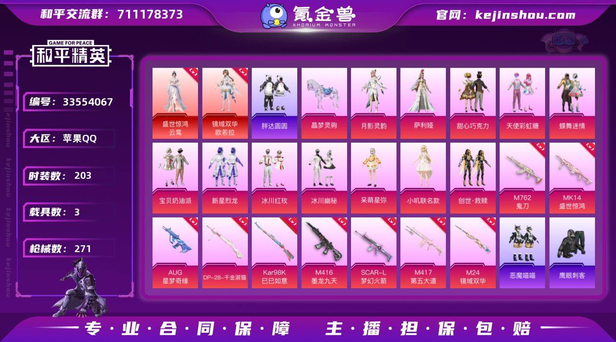 YZJ14644-可二次-苹果Q-2红装1稀有3载具28粉装13特效枪12热门【神装精氪公主号 衣柜号 多款热门穿搭 81级传奇收藏家 4级欧若拉 1级云鸾 3级AUG星梦奇缘 3级M4墨龙九天 火箭少女 巧克力三姐妹 小狐 猪妹 小叽联名款 绝对恒星 第五大道 千金淑猫 呆萌 权威小番茄 胖达圆圆 纯白跃动 萌趣戎叽 晶辉守护 绒兔团圆 花园小羊咩 蓝螳螂 粉螳螂 双马尾 红眼罩 天命 星梦奇缘背包 绝对恒星头盔 3款升级飞行器 14种飞行器蜜桃猫-伙伴 美月兔-伙伴 粉雪蛇宝-伙伴 骑士小狐狸-伙伴 幸运爱玛-伙伴 小狗蛇点点-伙伴 6张改名卡】203套装271枪皮 97984热力值 7印记 历史超级王牌12星 【2红装】 盛世惊鸿-云鸾 (1级) 镜域双华-欧若拉 (4级) 【1稀有】 浪漫天命 【3载具】 虚妄之影(炫耀紫) 晶梦灵驹 辉羽雀灵自行车 【28粉装】 梦幻火箭 蝶舞迷情 萨利娅 奇迹舞步美雪 奇迹舞步美琪 绯穹魔姬 宝贝奶油派 天使彩虹糖 甜心巧克力 千金淑猫 异瞳寒姬 月影灵韵 小叽联名款 绯果甜心 创世救赎 呆萌星弥 绝对恒星 智耀战神 晶梦幻蝶 幻彩电音 缤纷油彩 第五大道 新星烈龙 冰川幽秘 甜梦小狐 彩虹甜喵 冰川红玫 焦糖拿铁 【13特效枪】 SCAR-L-梦幻火箭 (5级) M416-墨龙九天 (3级) Kar98K-巳巳如意 (5级...