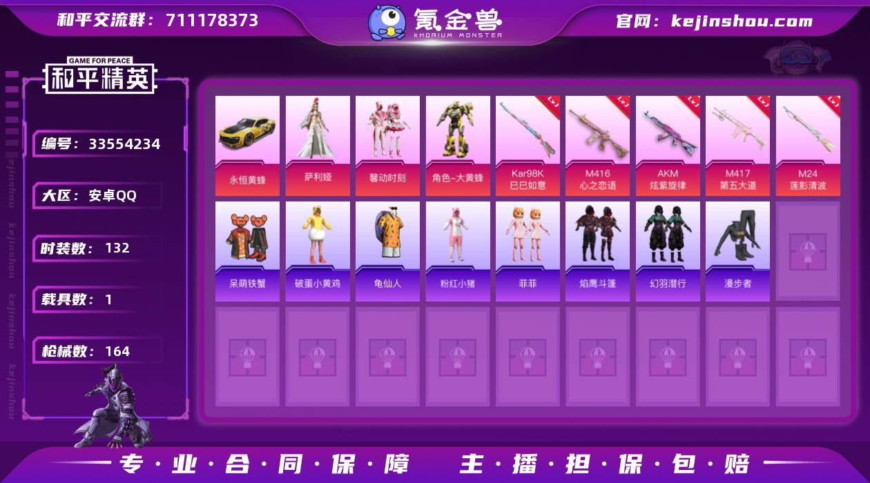YZJ16869-可二次-安卓Q-1载具6粉装9特效枪8热门132套装164枪皮 54108热力值 极品小号 200多天特权卡 5级M4心之恋语 5级AK炫紫旋律 满级手雷招财进宝 馨动时刻 大黄蜂 炫光之旅 绯穹魔姬 镜光幻境 深海小丑鱼 菲菲 永恒黄蜂 10印记 历史超级王牌6星 【1载具】 永恒黄蜂 【6粉装】 萨利娅 绯穹魔姬 大黄蜂 炫光之旅 镜光幻境 馨动时刻 【9特效枪】 M416-心之恋语 (5级) AKM-炫紫旋律 (5级) Kar98K-巳巳如意 (5级) DP-28-豹影疾电 (5级) AMR-炫光之旅 (5级) M417-第五大道 (5级) M24-莲影清波 (4级) Mk14-福马献瑞 (5级) 破片手榴弹-招财进宝 (7级) 【8热门】 龟仙人 呆萌铁蟹 深海小丑鱼 粉红小猪 漫步者 破蛋小黄鸡 极速红龙 M24-奇异狩猎者 【1头盔】 智能音符头盔 营地ID:926737607