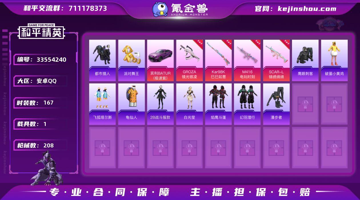YZJ15385 可二次 安卓Q-3稀有1载具5粉装9特效枪8热门167套装208枪皮 62669热力值 精品身法号 地铁满天赋 幻影战神 圣堂之誓 幻星舰长 花灵 都市 金鞋 权威小菠萝 幸运青 夏日倾情 NV战队服 2P小姐姐 满级M4电玩 7印记 历史卓越王牌9星 【3稀有】 都市猎人 派对舞王 派对舞王(金靴子) 【1载具】 宾利BATUR(极速紫) 【5粉装】 圣堂之誓 绯穹魔姬 花灵 幻影战神 幻星舰长 【9特效枪】 SCAR-L-锦绣绵绵 (5级) M416-电玩时刻 (5级) Kar98K-巳巳如意 (5级) MG-36-沧焰双生 (5级) DP-28-豹影疾电 (5级) Mk14-甜梦熊击 (5级) GROZA-镜光银凌 (5级) Mk14-福马献瑞 (3级) ACE32-萌骑漫游 (2级) 【8热门】 龟仙人 2B战斗服款 鹰眼刺客 NV战队服 漫步者 破蛋小黄鸡 极速红龙 AKM-奇异狩猎者 【1飞行器】 花傲天飞行器 营地ID:943342605