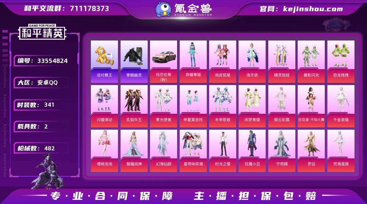 安卓,手Q-2神装-25粉装-35特效枪-2载具-17粉色飞行器-187889热力值-20王牌印记-341套装-482枪皮 【红色神装等级】:百变纱华-安妮(二级),霜月狼主-尼诺(一级) 【红色角色神装】:百变纱华-安妮,霜月狼主-尼诺 【热门品类】:绝对防御上衣,套装-浪漫天命,套装-派对舞王,套装-小丑鱼,套装-龟仙人,套装-暗影哥特,套装-粉红小猪,套装-红红火火,熔岩游骑兵连帽夹克,套装-寒蝎幽灵 【粉色套装】:粉装-俏皮狐尾,角色-洛天依,粉装-精灵娃娃,粉装-碧影闪光,粉装-恐龙拽拽,粉装-闪耀律动,粉装-炙焰牛王,粉装-寒光使者,粉装-仲夏莫吉托,粉装-未来歌姬,粉装-闲梦青缨,角色-烟云彩露,角色-狂花道·不知火舞,角色-千金淑猫,角色-樱桃泡泡,角色-智耀战神,角色-幻海仙踪,粉装-星穹咏叹调,角色-时光之誓,角色-狂魇小丑,角色-宁雨蝶,角色-罗征,角色-荧海星豚,角色-奇迹舞步 美琪,角色-异瞳寒姬 【粉色枪皮等级】:UMP45-霜月狼主(三级),AKM-梦之光华(六级),AKM-绿萝繁花(五级),SCAR-L-锦绣绵绵(五级),M416-五爪金龙(六级),M416-电玩时刻(五级),GROZA-镜光银凌(五级),AUG-暖羊咩咩(五级),AUG-罪夜之冕(五级),M762-青锋波束(五级),蜜獾-异瞳寒姬(五...