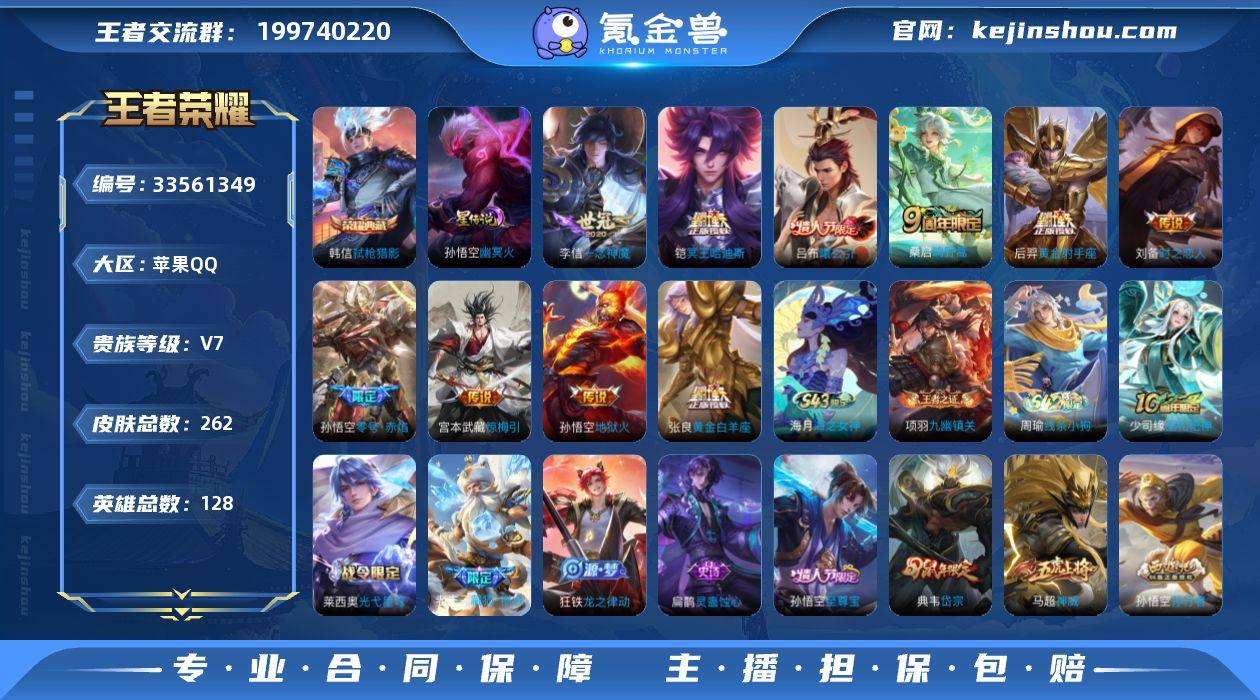 W16209,,可立即换绑无需挂单养号,,钱包没有注销,,,铭文满级,,典藏1,,传说10,,,星传说2,,,按键9,,,夺宝92,,苹果Q-V7-至尊星耀V段位-128英雄-262皮肤-1典藏皮肤-10传说-78史诗 【英雄全皮】:空空儿全皮 【荣耀典藏】:韩信弑枪猎影 【传说皮肤】:桑启鸣野蒿,铠冥王哈迪斯,吕布曦玄引,宫本武藏惊梅引,孙悟空零号赤焰,李信一念神魔,刘备时之恋人,张良黄金白羊座,后羿黄金射手座,孙悟空地狱火 【限定皮肤】:铠冥王哈迪斯,蒙犽顽岩魄,大乔绒语心约,姜子牙天穹之誓,李白谪仙醉月,狄仁杰阴阳师,赵云皇家上将,孙尚香蔷薇恋人,庄周高山流水,元歌无心,典韦岱宗,马可波罗山海玄木吟,狄仁杰魔术师,狄仁杰万华元夜,达摩沙漠行僧,项羽海滩派对,兰陵王金庭之子,亚瑟潮玩骑士王,孙悟空至尊宝,孙悟空零号赤焰,孙悟空孙行者,李元芳云中旅人,钟馗驱傩正仪,干将莫邪胡桃夹子,鬼谷子五谷丰年,苏烈千军破阵,梦奇顽趣,沈梦溪大漠名商,裴擒虎李小龙,裴擒虎擒涛扼浪,云中君纤云弄巧,上官婉儿梁祝,嫦娥拒霜思,西施玲珑珍味,鲁班大师探海日志,桑启海盐诗旅,戈娅驭风魔法,艾琳流音漫舞,司空震地狱燃心,阿古朵江河有灵,张良古海...