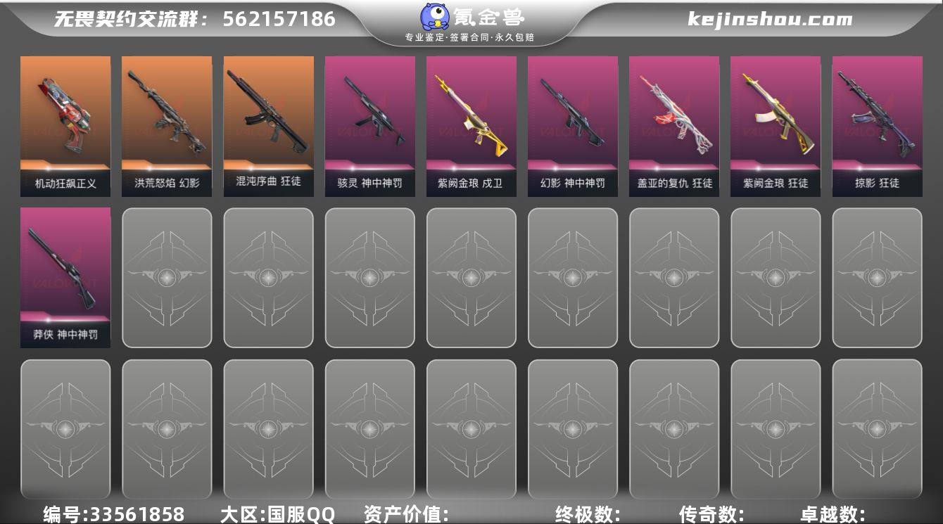 【PTWW4021】LV等级70/皮肤总价值47880/段位未定级/总皮肤数量85/刀皮数量10/枪皮数量75/套装数量3/具体详情请看图/VCT 2025 赛季套装/西部未来/神中神罚套装/幻棱/炼狱/维斯/暮蝶/钛狐/壹决/铁臂/捷风/雷兹/幽影/不死鸟/贤者/猎枭/蝰蛇/零/芮娜/奇乐/尚勃勒/霓虹/斯凯/K/O/盖可/黑梦/钢锁/近战武器-神之刃/近战武器-穿花蝴蝶/近战武器-VCT2025爪刀/近战武器-镭切/近战武器-澄湖潋滟/近战武器-未来开拓者/近战武器-荒土机兵热能刀/近战武器-诡秘蛇影军刀/近战武器-神圣领域战刀/近战武器-日耀风暴遗器/狂徒-混沌序曲/狂徒-掠影/狂徒-盖亚的复仇/狂徒-紫阙金琅/狂徒-荒土机兵/狂徒-诡秘蛇影/2022全球冠军赛 幻影/幻影-洪荒怒焰/西部未来 幻影/幻影-神中神罚/神圣领域 幻影/幻影-纳米打击/幻影-末日之翼/戍卫-紫阙金琅/戍卫-逆冲蛮牛/戍卫-月球哨兵/戍卫-折光棱晶/神圣领域 獠犬/獠犬-逆冲蛮牛/上古龙炎 冥驹/冥驹-荒土机兵/星云暗涌 冥驹/西部未来 飞将/飞将-末日之翼/莽侠-神中神罚/莽侠-诡秘蛇影/月球哨兵 莽侠/战神-般若假面2.0/神圣领域 战神/西部未来 奥丁/奥丁-纳米打击/奥丁-末日之翼/判官-诡秘蛇影/判官-纳米打击x/雄鹿-逆冲蛮牛/月球哨兵 雄鹿/骇灵-神中神罚/骇灵-荒...