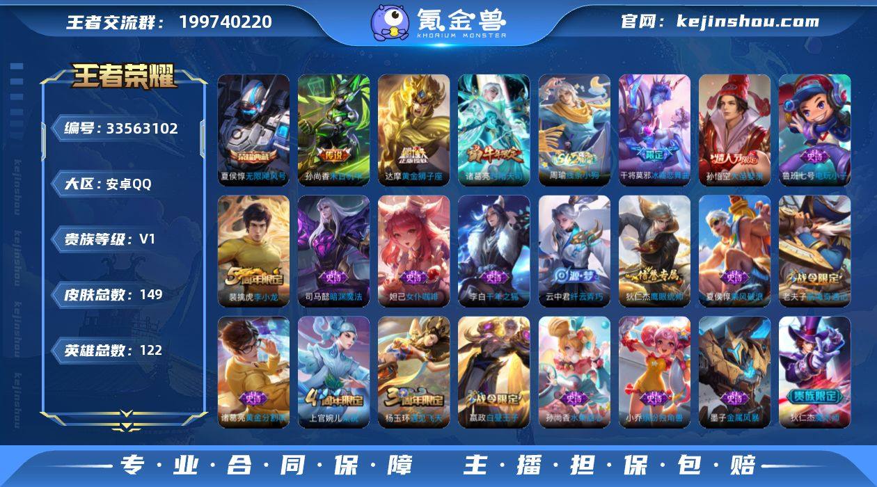 安卓Q-V7-尊贵铂金IV段位-122英雄-149皮肤-1典藏皮肤-3传说-31史诗HZ2641605 【荣耀典藏】:夏侯惇无限飓风号 【传说皮肤】:诸葛亮时雨天司,达摩黄金狮子座,孙尚香末日机甲 【限定皮肤】:白起狰,狄仁杰阴阳师,虞姬凯尔特女王,赵云皇家上将,墨子神迹守卫,嬴政优雅恋人,嬴政白昼王子,鲁班七号乒乒小将,芈月重明,芈月幻夜卜梦,吕布猎兽之王,夏侯惇朔风刀,曹操烛龙,典韦穷奇,狄仁杰魔术师,狄仁杰万华元夜,达摩沙漠行僧,项羽海滩派对,老夫子醍醐杖,老夫子航海奇遇记,程咬金演武夺筹,孙悟空大圣娶亲,牛魔御旌,钟馗驱傩正仪,杨玉环遇见飞天,干将莫邪冰霜恋舞曲,太乙真人饕餮,鬼谷子原初探秘者,诸葛亮时雨天司,弈星混沌棋,明世隐疑决卦,裴擒虎李小龙,狂铁御狮,米莱狄御霄,云中君纤云弄巧,伽罗天狼溯光者,盾山御銮,上官婉儿梁祝 【年限皮肤】:诸葛亮时雨天司 【赛季限定】:虞姬凯尔特女王,白起狰,太乙真人饕餮,曹操烛龙,芈月重明,典韦穷奇,狂铁御狮,米莱狄御霄,牛魔御旌,盾山御銮,夏侯惇朔风刀,弈星混沌棋,明世隐疑决卦,老夫子醍醐杖,鬼谷子原初探秘者,狄仁杰万华元夜,程咬金演武夺筹,钟馗驱傩正仪,达摩沙漠行僧,亚瑟荣...