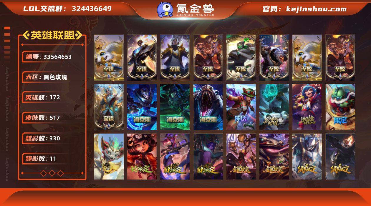 【店主推荐捡漏号】白银段位-172英雄-517皮肤-330炫彩-1终极-16神话-71限定-51传说-119史诗 【神话皮肤】:十周年纪念安妮,源代码乐芙兰,十五周年纪念希维尔,神凰行者瑞羽圣凰艾尼维亚,海克斯科技嘉文四世,海克斯科技雷克顿,摄魂使者薇恩,至臻征服者贾克斯,至臻真实伤害亚索,至臻天龙之子伊泽瑞尔,至臻烈焰美人薇恩,至臻烈焰美人薇恩2022,至臻绒毛菲兹,至臻绒毛菲兹2022,至臻未来战士锤石,至臻源计划阴劫 【至臻皮肤】:至臻征服者贾克斯,至臻烈焰美人薇恩,至臻烈焰美人薇恩(2022),至臻天龙之子伊泽瑞尔,至臻绒毛菲兹,至臻绒毛菲兹(2022),至臻真实伤害亚索,至臻源计划阴劫,至臻未来战士锤石 【臻彩皮肤】:天龙之子卡莎飞龙乘云,无畏骑士瑟庄妮赤子初心,替父从军花木兰炫金龙刃,墨之影武者亚索金墨耀影,霸天异形卡兹克掠空魅影,星之守护者金克丝黑洞,可爱可爱粉红红布里茨,魔女阿卡丽虚荣,净雪之月莫甘娜冬虹,心之钢伊泽瑞尔天纵才华 【年限皮肤】:你看见过我的熊猫吗安妮,紫金罗刹莫甘娜,玉净夜叉凯特琳,烈焰美人薇恩,纳财大帝塔姆,王国机神青龙德莱文,王国机神苍狼瑟提,剪纸仙灵希维尔,天龙之子斯莫德,点心宝贝阿木木 【海克斯皮...