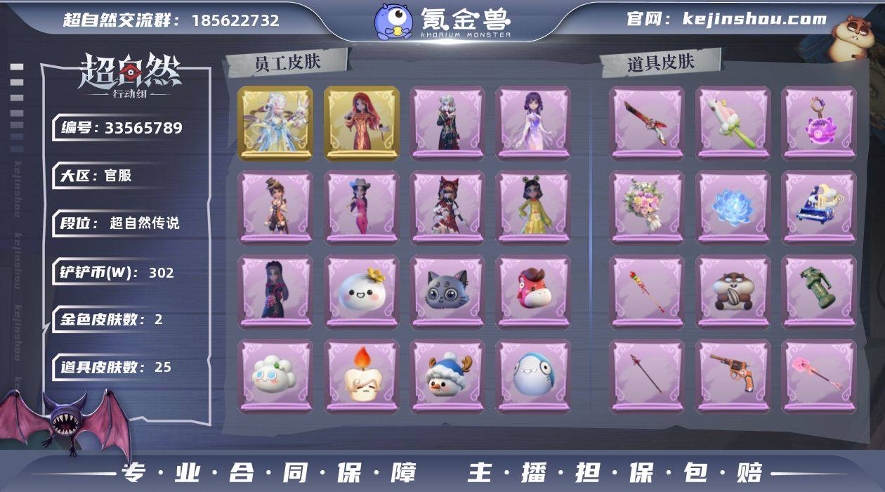 金皮2;紫皮7;道具皮25;皮肤:巫铃儿-镜花辞,莉莉-瑶台梦,莉莉-莓果陷阱,爱丽丝-丝缕哀歌,小黄-呱呱雨衣,爱德华-梵卓之礼,巫铃儿-琢玉怀乡,阿念-庆宴绮愿,爱丽丝-耀眼的你;道具:急救包-土拨鼠捏捏,闪光弹-邪恶滚滚猫,刺刀-美鲨匕首,除颤仪-冰晶般的代价,喷气背包-乘风溯雪,长枪-罪棘,黄牛能量饮料-青玉抱丹,急救包-蔷薇物语,专业手电-星寂,短管猎枪-安魂曲,额外的背包-飞花令,长鞭-新春炸响,夜视仪-金丝眼镜,长枪-糖葫芦霸王枪,腰包-红运福虎,转轮手枪-新星时代,音响-鸣沙鼓,闪光弹-金戈玄铜,铲子-赞萌波板糖,音响-月光奏鸣曲,短管猎枪-赞萌露比水枪,摸金符-花落精绝,腰包-月下莲台,音响-happy猫,额外的背包-灵感泉之花;美妆:美妆-萌兔气泡;饰品:头饰-鱼头怪头套,头饰-煤球喵头套,头饰-饺饺者头套,头饰-哈士奇头套,头饰-雪墩墩头套,头饰-烛光纪念,头饰-萨卡班甲鱼头套,头饰-滑稽头套,头饰-卑微头套,头饰-蒜了八,头饰-面具马头套,头饰-烈焰红唇头套,头饰-嘻嘻头套,头饰-呆滞头套,头饰-惊魂南瓜头套,头饰-大葱明头套,头饰-火爆了头套,头饰-炙热烧烤,头饰-马上有钱,头饰-樱桃奶油布丁,头饰-芝麻糊汤圆,头饰-太空鲨头套,头饰-后室幸存者头套,头饰-像素朋克墨镜,挂饰-天使...