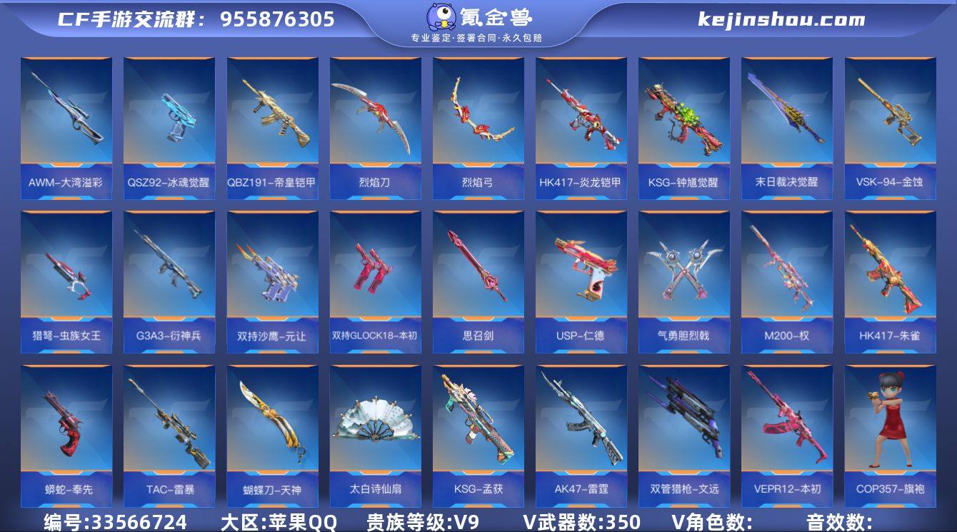 48802|【苹果QQ】 角色等级:荣耀元首 【角色】关小雨、蝴蝶、云悠悠、雅典娜、蝉、步练师、幽灵刀锋-觉醒、夏日灵狐-X 【武器】王者幻神、王者之力、王者之霆、王者之戮、王者之影、王者之光、王者之心、王者之魄【苹果QQ】 角色等级:荣耀元首 【角色】关小雨、蝴蝶、云悠悠、雅典娜、蝉、步练师、幽灵刀锋-觉醒、夏日灵狐-X 【武器】王者幻神、王者之力、王者之霆、王者之戮、王者之影、王者之光、王者之心、王者之魄、王者之神、王者之烈、王者之狱、王者之翎、M12S-雷霆王者、王者之业、王者之电、王者之迹、王者之隐、王者之轮、王者之魂、王者之痕、王者之刺、王者之击、王者之锋、AK47-奉先、AK47-常胜、AK47-孟德、M4A1-星象、M4A1-仲达、M200-权、AWM-妙才、TAC-慈、MK47-仁德、KSG-孟获、VEPR12-本初、SCAR-文远、蟒蛇-奉先、消音毛瑟-常胜、沙鹰-孟德、双管猎枪-文远、柯尔特-仲达、MK23-瑜、USP-仁德、双持GLOCK18-本初、虎头湛金枪、龙胆亮银枪、气勇胆烈戟、思召剑、铁锹-孟德、虚空之槌-妙才、M200-幻神、TAC-雷暴、AWM-竞界荣光、AWM-游骑兵、AWM-天龙、巴雷特-雷神、巴雷特-安琪拉、巴雷特-极光、98K-星神、98K-黑骑士、M4A1-七色宝葫、M4A1-雷神、M4A1-游骑...