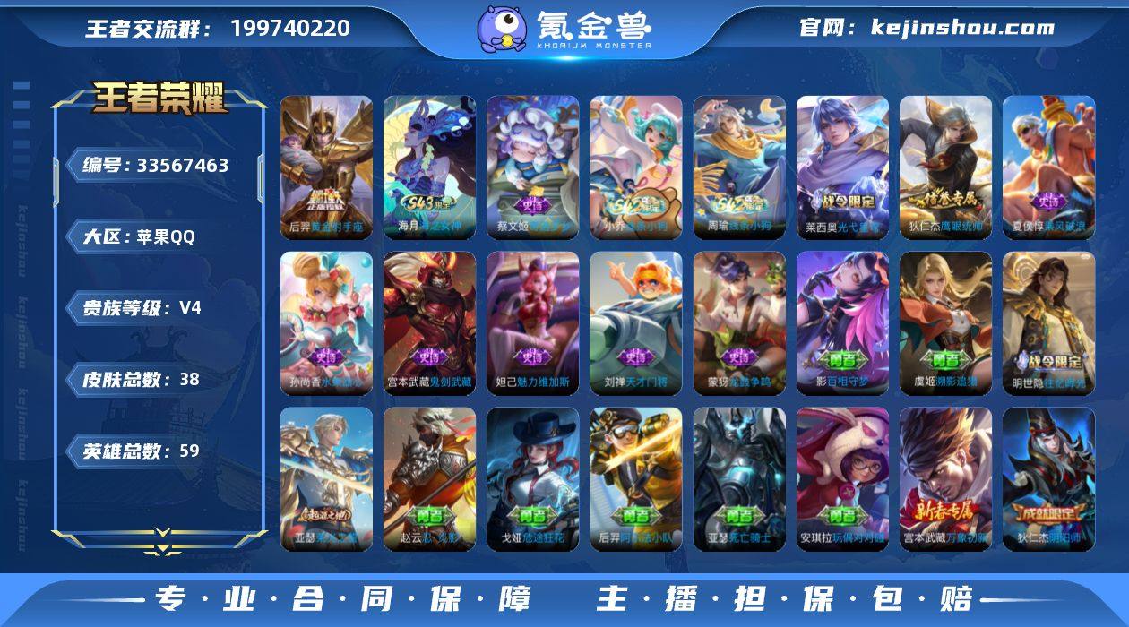 巅峰发育路(全国)一千强大国标1.46w蒙犽61.8%胜率王者印记2-150级铭文V4-至尊星耀IV段位-59英雄-38皮肤-1传说-10史诗 【传说皮肤】:后羿黄金射手座 【限定皮肤】:狄仁杰阴阳师,项羽海滩派对 【赛季限定】:亚瑟荣光之誓 【战令限定】:莱西奥光弋星穹,明世隐往忆晖光,周瑜线条小狗,小乔线条小狗 【史诗皮肤】:海月海之女神,蔡文姬奇遇梦乡,周瑜线条小狗,小乔线条小狗,莱西奥光弋星穹,蒙犽龙鼓争鸣,狄仁杰鹰眼统帅,刘禅天才门将,夏侯惇乘风破浪,妲己魅力维加斯,孙尚香水果甜心,宫本武藏鬼剑武藏 【其他皮肤】:影百相守梦,虞姬溯影追猎,明世隐往忆晖光,亚瑟荣光之誓,戈娅危途狂花,王昭君幻想奇妙夜,狄仁杰阴阳师,后羿阿尔法小队,宫本武藏万象初新,亚瑟死亡骑士,安琪拉玩偶对对碰,赵云忍炎影,项羽海滩派对,澜孤猎,阿古朵熊喵少女,蒙犽归虚梦演,李信灼热之刃,元歌午夜歌剧院,公孙离花间舞,明世隐占星师,梦奇美梦成真,虞姬加勒比小姐,孙悟空西部大镖客,花木兰剑舞者,钟无艳生化警戒 【大国标】:大国标蒙犽