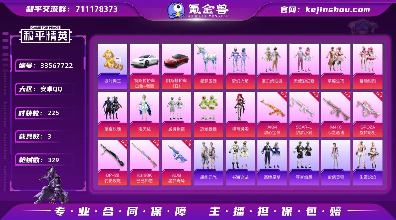 【AZH3698】安卓 手Q【梦幻火箭馨动时刻洛天依金靴子 三级星梦奇缘AUG 满级甜心宝贝AKM 甜梦小狐SCAR-L 心之恋语M416 旋转彩虹GROZA 3载具】10粉装-10特效枪-3载具-5粉色飞行器-106480热力值-24王牌印记-225套装-329枪皮 【热门品类】:粉装-梦幻火箭,套装-派对舞王,套装-龟仙人,套装-潮萌小黄鸭,套装-暗影哥特,套装-浪漫波比,套装-粉红小猪 【粉色套装】:粉装-宝贝奶油派,粉装-天使彩虹糖,粉装-梦幻火箭,粉装-草莓生巧,粉装-馨动时刻,粉装-暗夜玫瑰,角色-洛天依,粉装-岚岚物语,粉装-恐龙拽拽,角色-绯穹魔姬 【粉色枪皮等级】:AKM-甜心宝贝(七级),SCAR-L-甜梦小狐(七级),M416-心之恋语(七级),GROZA-旋转彩虹(七级),AUG-星梦奇缘(三级),UMP45-萌骑冒险(二级),AKS-74U-森灵之息(五级),Kar98K-巳巳如意(五级),Mk14-福马献瑞(五级),DP-28-豹影疾电(五级) 【粉色载具】:特斯拉Model 3(珍珠白),阿斯顿马丁DBS(红),星梦玉骢 【粉色枪皮】:AKM-甜心宝贝,SCAR-L-甜梦小狐,M416-心之恋语,GROZA-旋转彩虹,AUG-星梦奇缘,UMP45-萌骑冒险,AKS-74U-森灵之息,Kar98K-巳巳如意,Mk14-福马献瑞,DP-28-豹影疾电 【粉色飞行器】:炫彩糖果飞行器,梦幻...