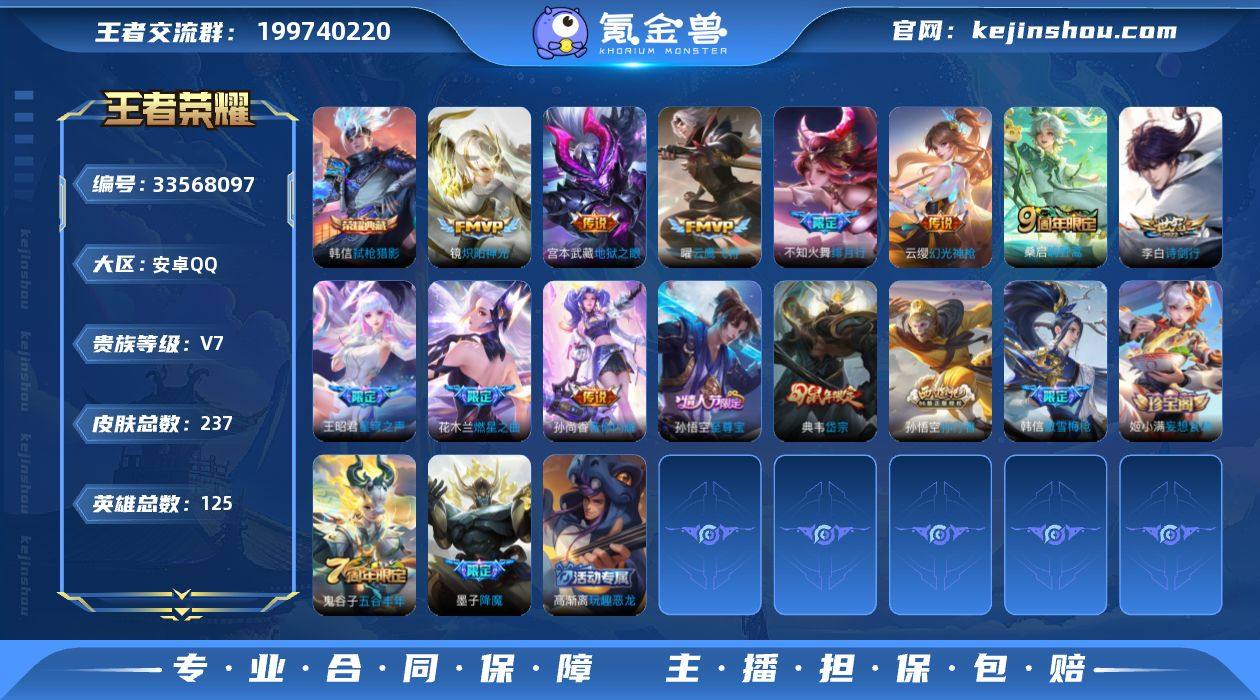 安卓Q 可二次 金标万战韩信 1典藏13传说125英雄237皮肤 弑枪猎影 逐花归海 马超琥珀纪元 幻光神枪 愿照九州拓 鸣野蒿 燃星之曲 绯月行 星穹之声 音你闪耀 诗剑行 炽阳神光 云鹰飞将 地狱之眼 至尊宝 岱宗 傲雪梅枪 时之祈愿男 降魔 孙行者 原初追逐者 黎明之约 苍穹之光 玫瑰异探 器灵浮梦炉 星界特工 心动手记海诺 关羽百相守梦 匿光破解者 电玩爆裂旋风 神器万象笔 水晶猎龙者 猫狗日记女 金属风暴 特工魅影 特工战影 玩趣恶龙 舞动绿茵 妄想食味 逐浪之夏 修罗 功夫厨神 心灵骇客 圣诞恋歌 幽灵船长 圣诞狂欢 末日机甲男 星夜王子 节奏热浪 天才门将 绅士熊喵 偶像歌手 街头霸王 箭羽风息 暗渊魔法 摇滚巨星 缤纷独角兽 鬼剑武藏 德古拉伯爵 冰雪圆舞曲 花好人间 克喵 群星魔术团程咬金 未来纪元赵云 拳王 女仆咖啡 金庭之子 大漠名商 敏锐之力 云中旅人 丁香结 海盐诗旅 皇家上将 擒涛扼浪 探海日志 水果甜心 古海寻踪 天穹祈灯 超时空战士钟无艳 奇幻香踪 无心 驭风魔法 星界游侠 地狱燃心 江河有灵 荣光圣徽 电玩高手 怒海争锋 五谷丰年 真爱魔法 鹰眼统帅 魔术师 王者荣耀账号