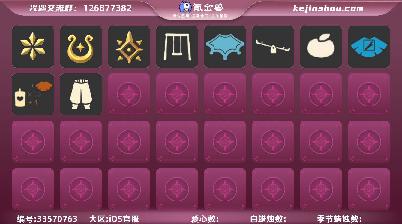 账号类型: 手机账号 季节已毕业: 音韵季,魔法季,预言季 完成地图: 雨林,霞谷,暮土 珍稀物品: 阿努比斯(狗头),白鸟头,魔法季耳坠 礼包: 秋千,瑞雪,跷跷板,橘子,tgc,创始人 裤子: 武士裤