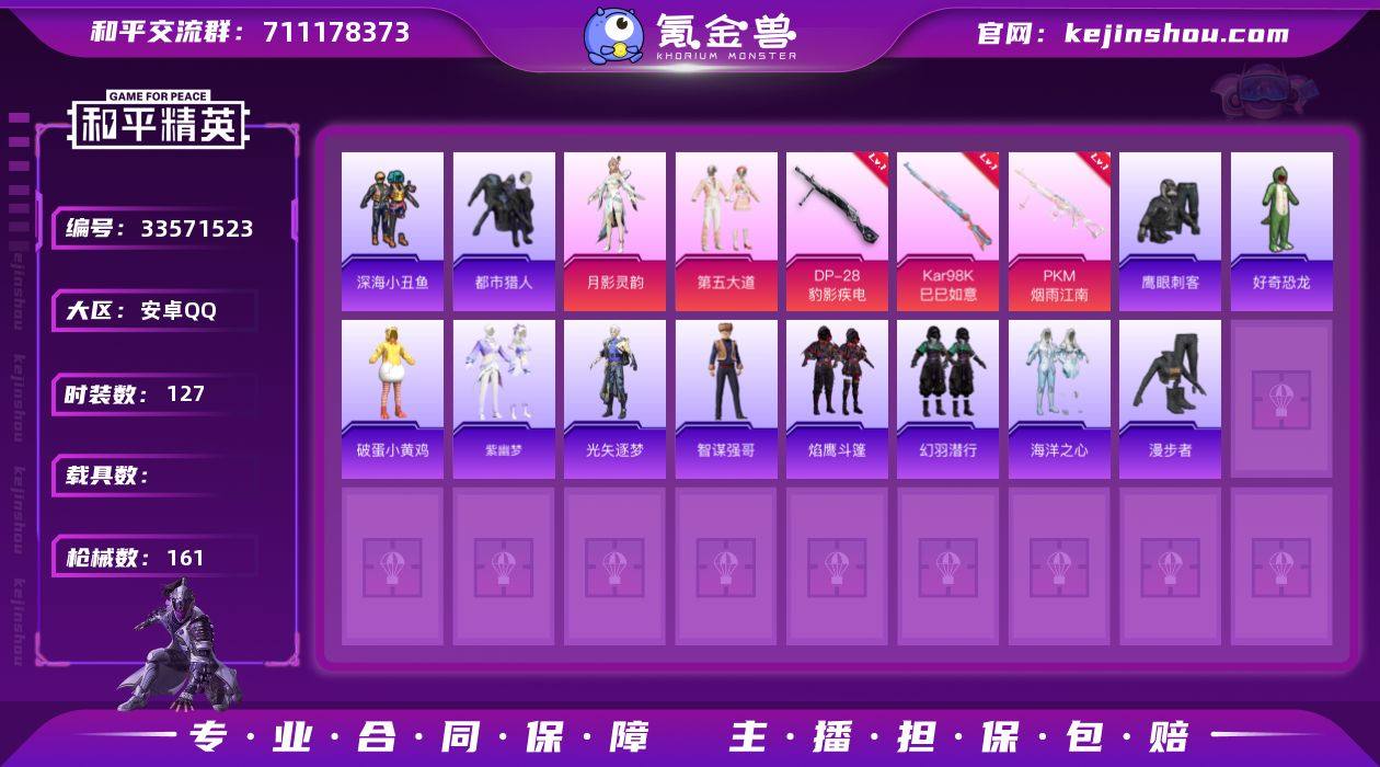 DYH18164【2粉装4特效 都市猎人 深海小丑鱼】安卓手Q-2粉装-4特效枪-127套装-161枪皮-12王牌印记-荣耀皇冠Ⅰ-47305热力值【2粉装】角色-月影灵韵,第五大道【4特效枪】PKM-江南烟雨[7级],Kar98K-巳巳如意[5级],DP-28-豹影疾电[5级],Mk14-福马献瑞[5级]【3稀有】都市猎人,深海小丑鱼,M762-奇异狩猎者【6飞行器】异域银装飞行器,顶峰精英尾迹,荒原烈焰飞行器,鸡智如我飞行器,破刃行动尾迹,空岛之星尾迹【1背包】深海小丑鱼背包【279其它衣服和枪皮】幻影武者,夏日倾情,SS20特训,SS23特训,老实芭蕉,SS38特训,白色伏地魔,锦衣飞扬,旭日情侣,纯真浪花,蓝彩潮人,缤纷果语,海洋之心,SS22特训,黑色伏地魔,红釉青花,雪绒豹,糖糖葫芦,沙漠毒蛇,青团波波,竞技名士,幻羽潜行,光之冒险,冰冻风暴,龙的传人,薄荷星砂,海岛探路者,凌霄紫焰,SS25特训,擎苍青焰,竞技角斗士,萌鸡速递,耀粉歌者,角色-英勇保护者,星途旅人,蓝冰羽,焰鹰斗篷,SS14特训,SS21特训,完美偶像,蓝海鲸歌,迅捷龙虾,空岛之星,SS37特训,黄色伏地魔,战术大师,顶瓜瓜,治愈之星,SS29特训,角色-光矢逐梦,长空猛禽,湖蓝色名流,智谋强哥,绮丽涂鸦,元素星魂,麻辣教官,牛气冲天,SS13特训,SS27特训,SS30特训,冰河战士,耀眼新星,玉兔迎春,破...