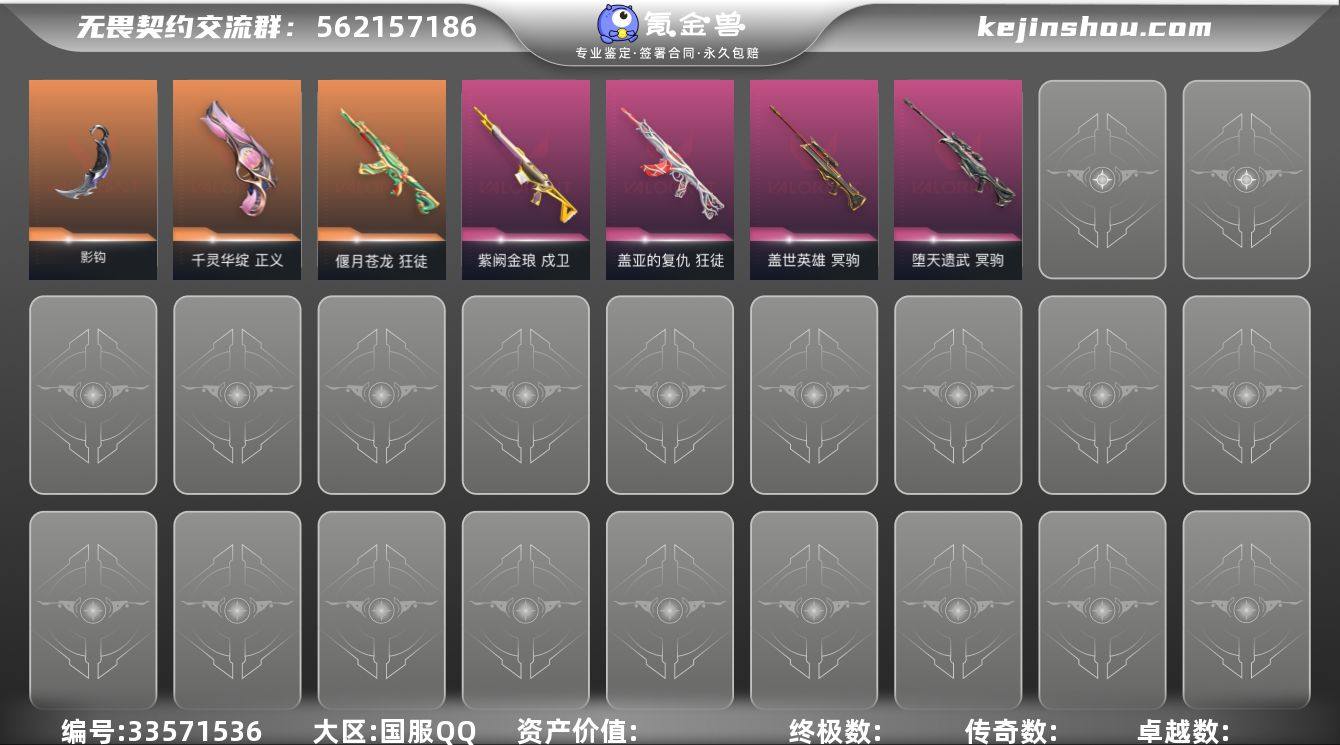 【套装】:掠影//2.0套装 【英雄】:幻棱,炼狱,维斯,暮蝶,钛狐,壹决,铁臂,捷风,雷兹,幽影,不死鸟,贤者,猎枭,蝰蛇,零,芮娜,奇乐,尚勃勒,霓虹,斯凯,夜露,星礈,K/O,海神,盖可,黑梦,钢锁 【近战武器】:近战武器-蒙太奇 战斧,近战武器-碎心裂刃,近战武器-影钩,近战武器-星际猎兵 短剑 【狂徒】:狂徒-塑水宗,狂徒-偃月苍龙,狂徒-ORA x 颗秒,狂徒-盖亚的复仇 【幻影】:幻影-掠影//2.0,幻影-蒙太奇 【戍卫】:戍卫-紫阙金琅 【冥驹】:冥驹-堕天遗武,冥驹-盖世英雄 【莽侠】:莽侠-RGX 11z Pro//3.0 【战神】:战神-蒙太奇 【奥丁】:奥丁-掠影//2.0 【骇灵】:骇灵-掠影//2.0,骇灵-蒙太奇 【VCT手枪】:标配-VCT25 x BLG 【正义】:正义-千灵华绽,正义-混沌序曲//2.0,正义-纳米打击 【鬼魅】:鬼魅-掠影//2.0 【狂怒】:狂怒-蒙太奇 【卡面】:终章:激斗汉堡 卡面,进入射程 卡面,精灵大战 卡面,南瓜盛典 卡面,零点嗅探设计图 卡面,无畏契约GO!第一卷:芮娜 卡面,无畏契约GO!第一卷:零 卡面,铁臂设计图 卡面,代号红色 卡面,新兵报到 卡面,V契约 卡面,无畏契约 卡面 【喷漆】:战“素”兔 喷漆,嗨宝南瓜灯 喷漆,控场勿近 喷漆...