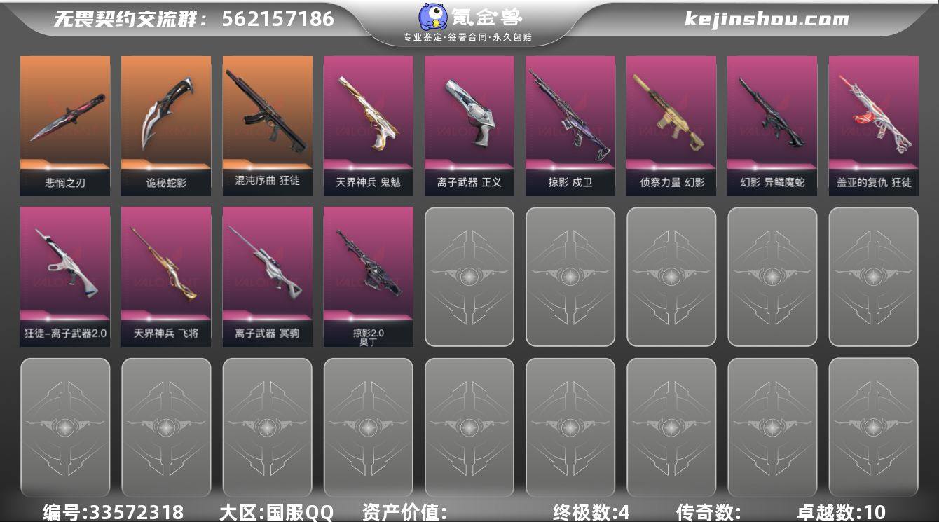 【编号63901 可秒换绑】【店长推荐!极品一突号!悲怜之刃 混沌序曲狂徒 异磷魔蛇幻影 盖亚的复仇狂徒 掠影戍卫 天降神兵鬼魅!! !】 【套装】:无畏契约季前邀请赛套装 【英雄】:幻棱,炼狱,维斯,暮蝶,钛狐,壹决,铁臂,捷风,雷兹,幽影,不死鸟,贤者,猎枭,蝰蛇,零,芮娜,奇乐,尚勃勒,霓虹,斯凯,夜露,星礈,K/O,海神,盖可,黑梦,钢锁 【近战武器】:近战武器-无畏契约季前邀请赛 悲悯之刃,近战武器-源始幻刃,近战武器-诡秘蛇影 军刀 【狂徒】:狂徒-混沌序曲,狂徒-盖亚的复仇,狂徒-离子武器//2.0,狂徒-诡秘蛇影 【幻影】:幻影-侦察力量,幻影-异鳞魔蛇,幻影-末日之翼 【戍卫】:戍卫-掠影,戍卫-折光棱晶 【冥驹】:冥驹-离子武器 【飞将】:飞将-天界神兵,飞将-末日之翼 【莽侠】:莽侠-诡秘蛇影 【奥丁】:奥丁-掠影//2.0,奥丁-末日之翼 【判官】:判官-诡秘蛇影 【骇灵】:骇灵-无限竞技 【蜂刺】:蜂刺-折光棱晶 【标配】:标配-折光棱晶 【正义】:正义-离子武器,正义-传奇制造 【鬼魅】:鬼魅-天界神兵,鬼魅-诡秘蛇影 【短炮】:短炮-末日之翼 【卡面】:南瓜盛典 卡面,无畏契约:暮蝶 卡面,红鳞松叶 卡面,零点嗅探设计图...