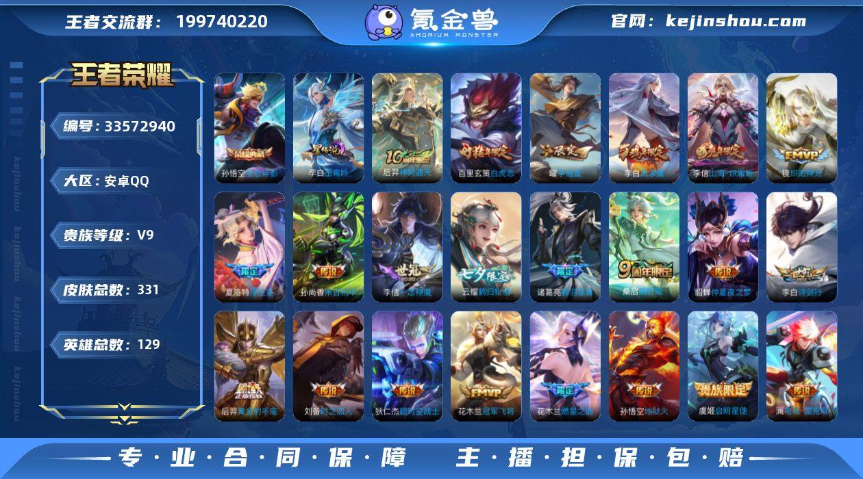 【W6988】安卓Q区-无二次-贵9-129英雄-331皮肤-1典藏-22传说-295幸运值-1星元-3按键-满猪年限定套-全息碎影/白虎志/至尊宝/诗剑行/李逍遥/鹤归松栖/鹤羽星尊/炽阳神光/凤求凰/时之恋人/一念神魔/末日机甲/冰锋战神-贵族积分11W-营地ID:472948996 【星元皮肤】:李白玉鸾吟
