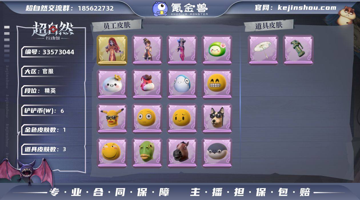 ZR960,金皮:1,紫皮:2,道具皮:3,外观:巫铃儿-镜花辞,爱丽丝-耀眼的你,阿念-庆宴绮愿,道具:急救包-蔷薇物语,闪光弹-金戈玄铜,伞-郁金春信,饰品:头饰-烛光纪念,头饰-烈焰红唇头套,头饰-卑微头套,头饰-萨卡班甲鱼头套,头饰-面具马头套,头饰-滑稽头套,头饰-鱼头怪头套,头饰-芝麻糊汤圆,头饰-马上有钱,头饰-嘻嘻头套,头饰-哈士奇头套,头饰-青团糯糯,头饰-呆滞头套,头饰-蒜了八,头饰-太空鲨头套,头饰-像素朋克墨镜,头饰-后室幸存者头套,挂饰-孤独对望,背饰-牛啤背包,动作:动作-新年摇,动作-sugar摇,动作-七仔摇,动作-拜年,动作-举牌,动作-抬手,工牌背景:工牌背景-永恒之阶,工牌背景-圣光之誓,工牌背景-复活的肖像,工牌背景-甜心的囚笼,工牌背景-流金照庭,工牌动作:工牌动作-净禅,员工:爱丽丝,莉莉,小黄,薇薇安,临云,零,巫铃儿,兰,逍遥,累充60元,铲铲币6.0万,金砖6,段位:精英Ⅰ,魔盒等级:64