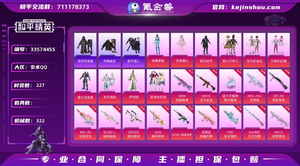 赤蝎 都市 眼罩 番茄 小熊背包安卓 手Q-10粉装-19特效枪-0载具-4粉色飞行器-104406热力值-17王牌印记-227套装-322枪皮 【热门品类】:套装-浪漫天命,套装-赤蝎幽灵,套装-都市猎人,套装-奇异狩猎者,套装-金羽特工,套装-龟仙人,套装-暗影哥特,角色-Mark.06,套装-红熊茄茄 【粉色套装】:粉装-银河战甲,粉装-甜心巧克力,粉装-宝贝奶油派,粉装-天使彩虹糖,角色-复仇流浪者,粉装-金丰海韵,角色-萨利娅,粉装-星穹咏叹调,角色-羊梦糖心,角色-异瞳寒姬 【粉色枪皮等级】:AKM-炫紫旋律(七级),AKM-星际浪客(一级),SCAR-L-锦绣绵绵(五级),M416-五爪金龙(七级),GROZA-镜光银凌(五级),AUG-暖羊咩咩(五级),M762-青锋波束(五级),ACE32-萌骑漫游(二级),汤姆逊-热量炸弹(五级),AKS-74U-无垠阁(六级),P90-金丰海韵(五级),Kar98K-巳巳如意(五级),Mk14-甜梦熊击(五级),Mk14-福马献瑞(五级),AMR-智耀战神(五级),DP-28-豹影疾电(五级),MG-36-沧焰双生(五级),M338-回旋牧梦使(五级),破片手榴弹-瓶中星球(七级) 【粉色枪皮】:AKM-炫紫旋律,AKM-星际浪客,SCAR-L-锦绣绵绵,M416-五爪金龙,GROZA-镜光银凌,AUG-暖羊咩咩,M762-青锋波束,ACE32-萌骑漫游,汤姆逊...