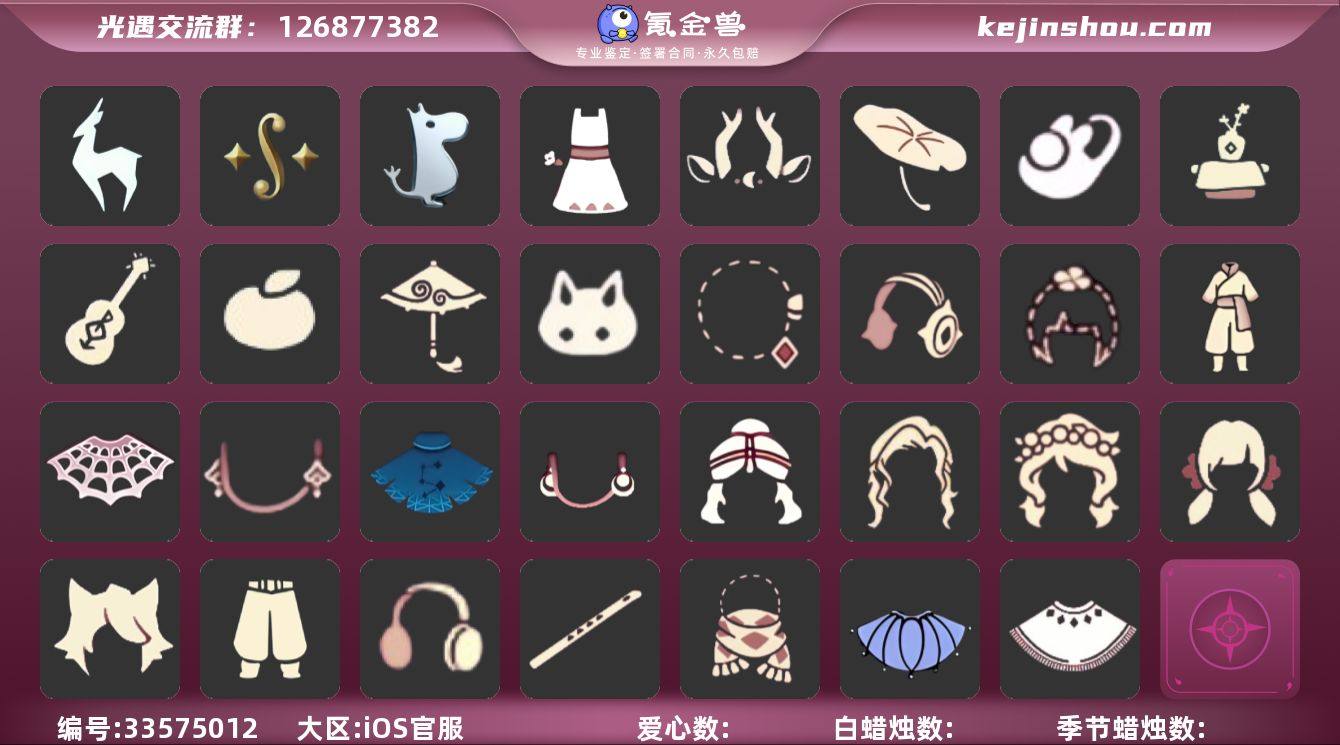 账号类型: 手机账号 季节已毕业: 九色鹿季,二重奏季,姆明季 完成地图: 无 礼包: 九色鹿角,荷叶伞,兔子鞋,茶桌,吉他,橘子,红伞,兔子,彩虹耳钉,彩虹耳机,四叶草,暗彩装扮,透明蛛丝,新年耳钉,满月耳坠,线框斗,向日葵连衣裙 裤子: 武士裤 面饰: 红耳机 项链: 围巾 发型: 樱花,公主头,虚荣,猫耳 头饰: 花环 斗篷: 白金,荧蓝斗篷 配饰: 笛子 亮点: 重塑药水82