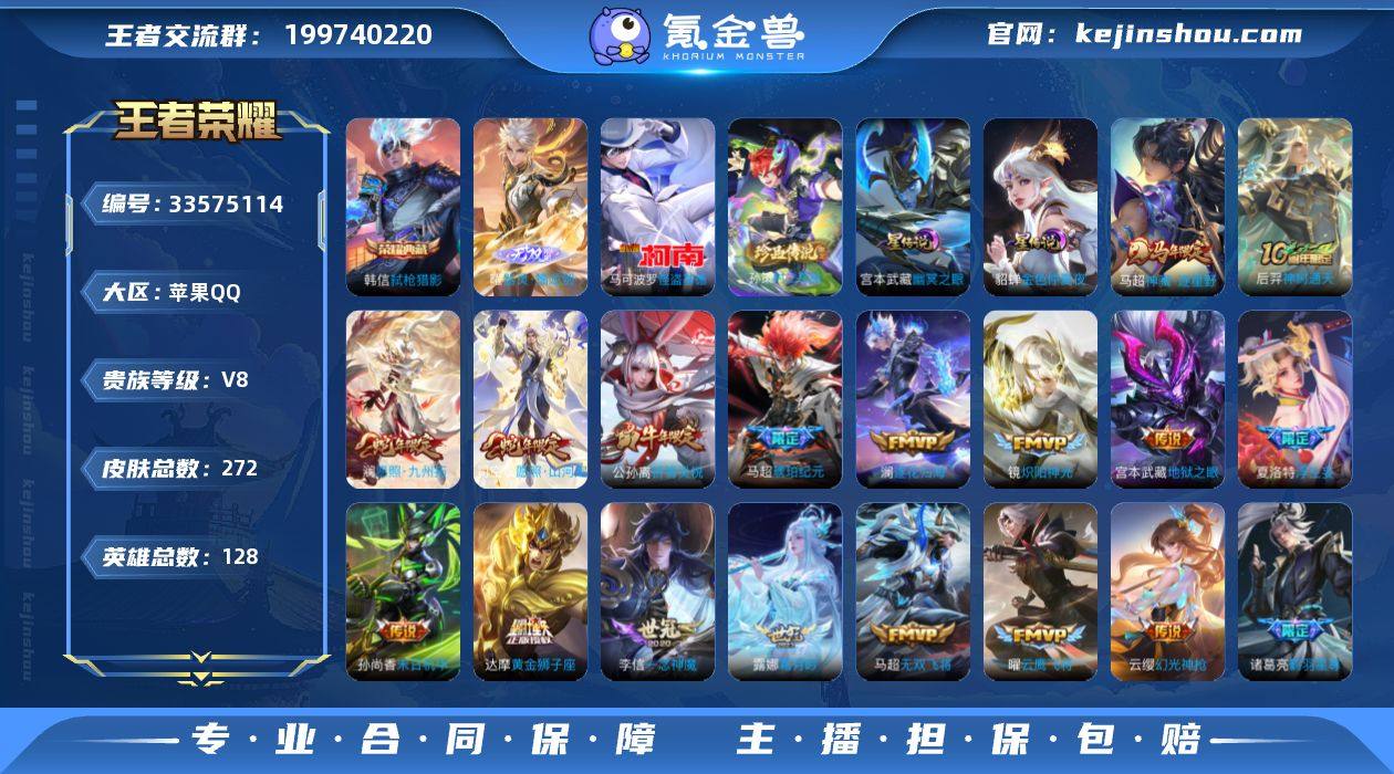 苹果Q-V8-最强王者段位-128英雄-272皮肤-1典藏皮肤-1无双-2珍品传说-27传说-78史诗 【英雄全皮】:敖隐全皮,夏洛特全皮,司空震全皮 【荣耀典藏】:韩信弑枪猎影 【无双皮肤】:曜器灵螭龙剑 【珍品传说】:孙策时之奇旅,马可波罗怪盗基德 【传说皮肤】:马超神骥逐星野,后羿神树通天,司空震愿照山河定,澜愿照九州拓,云缨幻光神枪,桑启鸣野蒿,马超琥珀纪元,澜逐花归海,露娜霜月吟,诸葛亮鹤羽星尊,公孙离记忆之芯,夏洛特浮生妄,干将莫邪画中仙,马超无双飞将,王昭君乞巧织情,公孙离祈雪灵祝,铠绛天战甲,镜炽阳神光,虞姬启明星使,曜云鹰飞将,李信一念神魔,刘备时之恋人,达摩黄金狮子座,梦奇胖达荣荣,貂蝉仲夏夜之梦,孙尚香末日机甲,宫本武藏地狱之眼 【限定皮肤】:蔡文姬夏日便利店,大乔绒语心约,虞姬夏日便利店,姜子牙天穹之誓,杨戬破阵退雄兵,李白谪仙醉月,狄仁杰阴阳师,赵云皇家上将,庄周云端筑梦师,阿轲迷踪丽影,元歌云间偶戏,夏侯惇朔风刀,狄仁杰魔术师,项羽海滩派对,孙悟空至尊宝,李元芳云中旅人,虞姬启明星使,干将莫邪胡桃夹子,干将莫邪画中仙,雅典娜黎明之约,诸葛亮鹤羽星尊,百里玄策原初追逐者,弈星混沌棋,公孙离...
