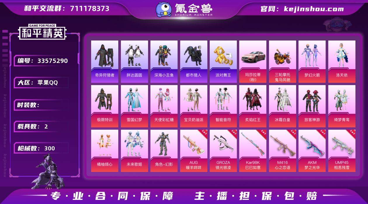 hs67495 苹果手Q-24王牌印记-有战神框-14粉装-14特效枪-2载具-热力值-234套装-300枪皮-7卓越印记-2传奇印记 【14粉装】套装-炙焰红王,套装-绮梦青鸾,套装-智能音符,套装-极限特训,套装-放客神游,套装-宝贝奶油派,套装-未来歌姬,角色-洛天依,套装-天使彩虹糖,套装-冰霜白皇,套装-橘柚倾心,套装-梦幻火箭,套装-雪国幻梦,角色-罪夜之冕 【14特效枪】SCAR-L-锦绣绵绵/5级,AKM-梦之光华/7级,AA12-G-萌骑幻想/5级,M416-心之恋语/7级,Kar98K-巳巳如意/5级,GROZA-镜光银凌/5级,UMP45-相思残雪/7级,AKS-74U-森灵之息/5级,AUG-暖羊咩咩/5级,蜜獾-异瞳寒姬/7级,DP-28-豹影疾电/5级,PKM-萌骑夺宝/5级,ACE32-萌骑漫游/3级,Mk14-福马献瑞/5级 【12稀有紫装】M416-星际漫游,都市猎人,派对舞王,奇异狩猎者,暗影哥特,深海小丑鱼,浪漫天命,胖达圆圆,东方飞龙,小丑鱼,龟仙人,暗夜魅影 【2稀有载具】玛莎拉蒂Ghibli(粉),鬼马风驰 【233稀有时装】雪国幻梦,梦幻火箭,放客神游,宝贝奶油派,天使彩虹糖,洛天依,智能音符,极限特训,罪夜之冕,橘柚倾心,冰霜白皇,炙焰红王,未来歌姬,绮梦青鸾,PAI追光队服,都市猎人,浪漫天命,奇异狩猎者,龟仙人,暗影哥特,深海小丑鱼,小丑鱼,东方飞龙,胖达圆圆,派对舞王,激萌...