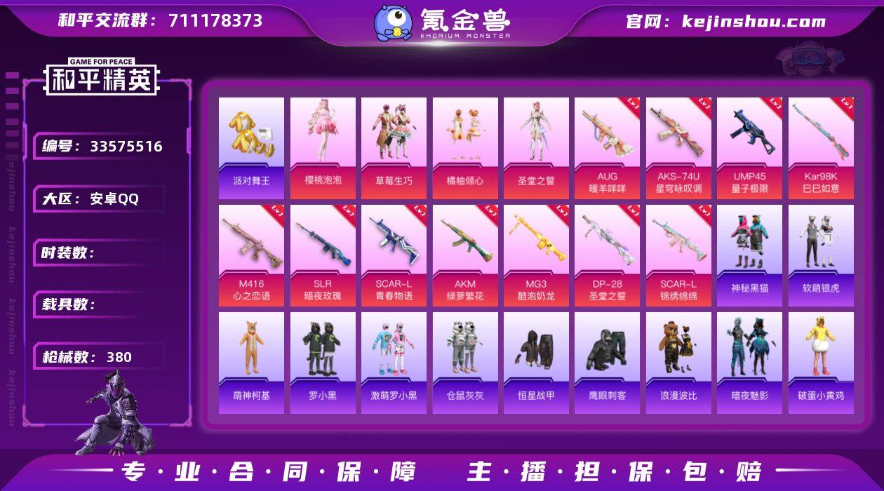 hs68815 安卓手Q-27王牌印记-6粉装-16特效枪-热力值-313套装-380枪皮-5卓越印记-1传奇印记 【6粉装】套装-星穹咏叹调,套装-橘柚倾心,角色-樱桃泡泡,套装-草莓生巧,角色-圣堂之誓,角色-异瞳寒姬 【16特效枪】DP-28-圣堂之誓/5级,MG3-酷泡奶龙/6级,AKS-74U-星穹咏叹调/7级,Kar98K-巳巳如意/5级,AKM-绿萝繁花/5级,DP-28-豹影疾电/5级,AUG-暖羊咩咩/5级,SCAR-L-锦绣绵绵/5级,SCAR-L-青春物语/5级,UMP45-量子极限/5级,AKS-74U-森灵之息/5级,M249-绝对恒星/4级,M416-心之恋语/7级,ACE32-萌骑漫游/4级,SLR-暗夜玫瑰/4级,Mk14-福马献瑞/5级 【7稀有紫装】Mark.06,派对舞王,2B战斗服款,暗影哥特,雪山精英,浪漫波比,暗夜魅影 【313稀有时装】圣堂之誓,草莓生巧,樱桃泡泡,橘柚倾心,星穹咏叹调,异瞳寒姬,迅捷龙虾,SS38特训,Mark.06,雪山精英,暗影哥特,浪漫波比,派对舞王,2B战斗服款,罗小黑,激萌罗小黑,仓鼠灰灰,萌神柯基,萌趣咩咩,神秘黑猫,软萌银虎,海上生明月,龙魂突击队, 暗影刺翼,异域银装,摩登魅猫,星渊小夜曲,街头风暴,星途旅人,冰河战士,鱼渊荷华,大橘大利,燕燕于飞,战术大师,智谋强哥,瑰石海星,雏菊兔兔,馥郁金蕊,马上有钱,香桃花海,蝶变,瑰梦爱神,巳巳如意,粉恋花,湖畔霞光,曼妙...