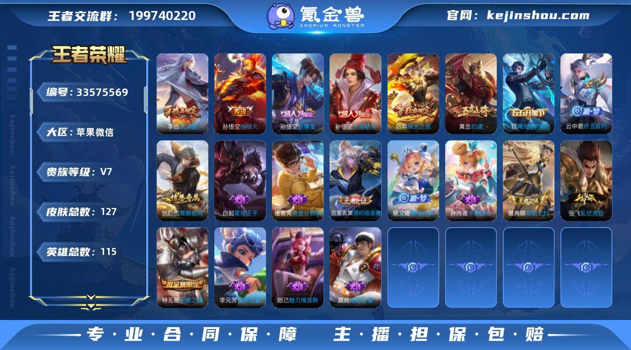 V7 4传说 115英雄 127皮肤 可二次 可修改实名 男号