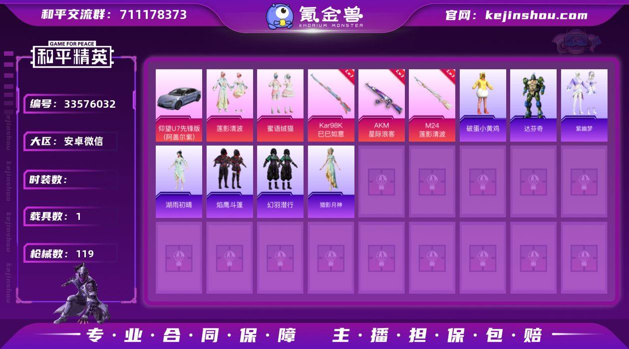 hs69840 安卓微信-3王牌印记-4粉装-4特效枪-1载具-38651热力值-68套装-119枪皮
