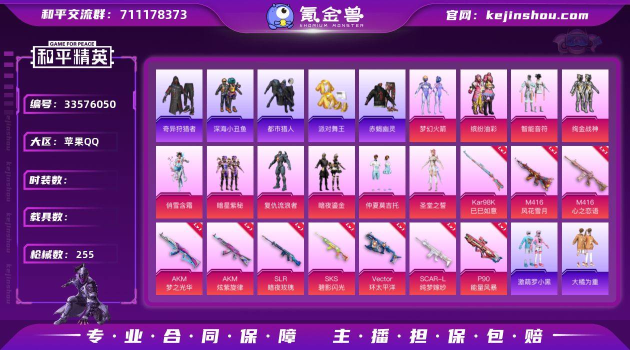 hs69855 苹果手Q-19王牌印记-11粉装-11特效枪-84327热力值-164套装-255枪皮-1卓越印记 【11粉装】套装-梦幻火箭,套装-仲夏莫吉托,套装-俏雪含霜,角色-复仇流浪者,套装-智能音符,套装-暗夜鎏金,套装-绚金战神,套装-缤纷油彩,角色-冷漠罗丽,套装-暗星紫秘,角色-圣堂之誓 【11特效枪】SLR-暗夜玫瑰/5级,Vector-环太平洋/5级,Kar98K-巳巳如意/5级,M416-心之恋语/7级,DP-28-豹影疾电/5级,AKM-炫紫旋律/1级,SCAR-L-纯梦嫁纱/7级,P90-能量风暴/5级,M416-风花雪月/4级,AKM-梦之光华/5级,SKS-碧影闪光/5级 【10稀有紫装】都市猎人,派对舞王,赤蝎幽灵,奇异狩猎者,暗影哥特,深海小丑鱼,浪漫天命,迅捷狂鲨,小丑鱼,龟仙人 【164稀有时装】梦幻火箭,缤纷油彩,智能音符,绚金战神,圣堂之誓,俏雪含霜,暗星紫秘,冷漠罗丽,复仇流浪者,暗夜鎏金,仲夏莫吉托,SS38特训,都市猎人,浪漫天命,奇异狩猎者,龟仙人,暗影哥特,深海小丑鱼,小丑鱼,迅捷狂鲨,赤蝎幽灵,派对舞王,激萌罗小黑,大橘为重,狂沙舞者,Alan Walker,萌趣咩咩,龙魂突击队,小熊娃娃,都市丽猫,街头风暴,星途旅人,糖霜甜心,冰河战士,鱼渊荷华,大橘大利,燕燕于飞,战术大师,智谋强哥,雏菊兔兔,香桃花海,蝶变,巳巳如意,闪电轻猫,星影赞美诗,狂鲨锋...