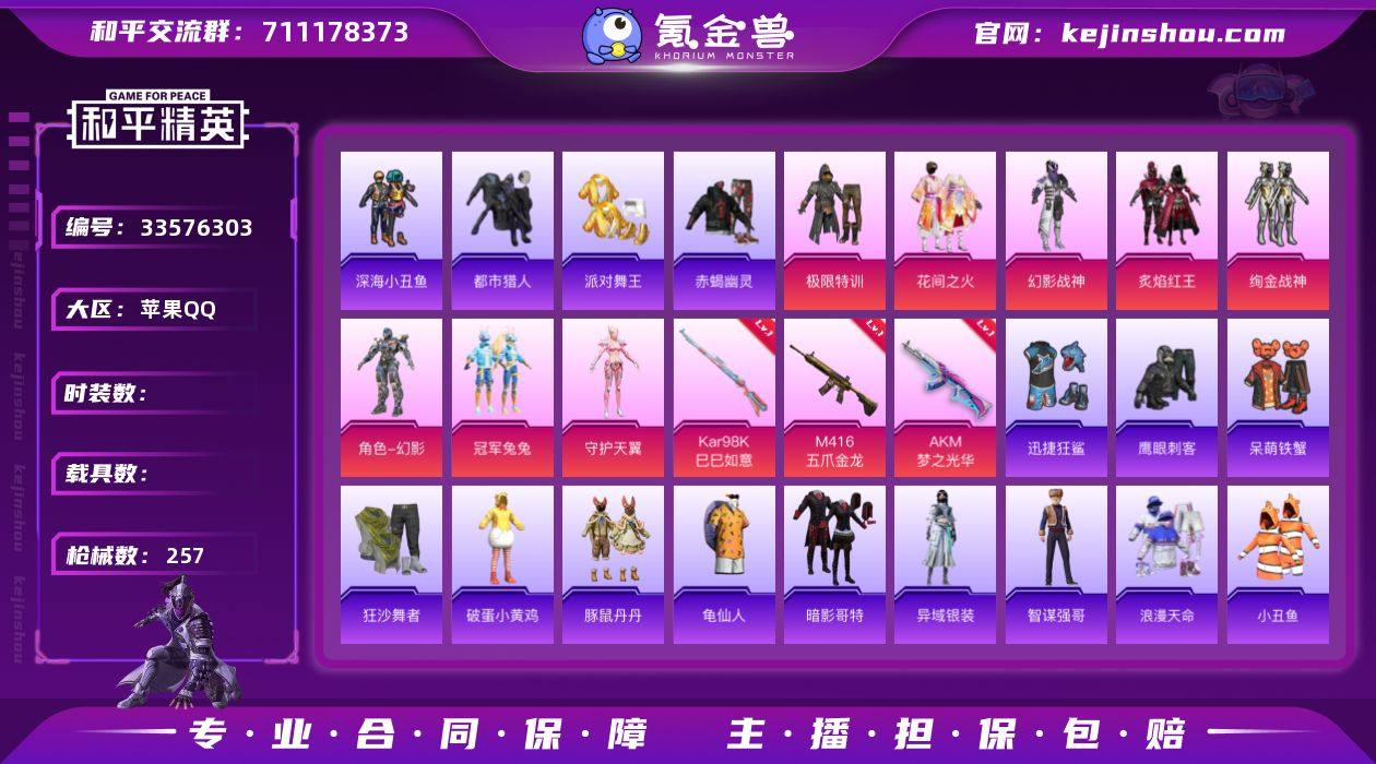 hs69812 苹果手Q-18王牌印记-7粉装-8特效枪-77679热力值-199套装-257枪皮-3卓越印记 【7粉装】套装-极限特训,套装-花间之火,套装-幻影战神,套装-绚金战神,套装-冠军兔兔,套装-炙焰红王,角色-守护天翼 【8特效枪】AKM-梦之光华/7级,M416-五爪金龙/7级,破片手榴弹-招财进宝/4级,Mk14-福马献瑞/5级,AKS-74U-森灵之息/5级,Kar98K-巳巳如意/5级,DP-28-豹影疾电/5级,ACE32-萌骑漫游/5级 【9稀有紫装】都市猎人,派对舞王,赤蝎幽灵,暗影哥特,深海小丑鱼,浪漫天命,迅捷狂鲨,小丑鱼,龟仙人 【198稀有时装】花间之火,极限特训,绚金战神,幻影战神,创世·幻影,守护天翼,冠军兔兔,炙焰红王,SS38特训,都市猎人,浪漫天命,龟仙人,暗影哥特,深海小丑鱼,小丑鱼,迅捷狂鲨,赤蝎幽灵,派对舞王,狂沙舞者,Alan Walker,萌趣咩咩,龙魂突击队,阿虎,异域银装,街头风暴,星途旅人,冰河战士,鱼渊荷华,大橘大利,燕燕于飞,NV战队服,战术大师,智谋强哥,马上有钱,香桃花海,巳巳如意,时希公主,琴音绮想,雪绒豹,画境星梦,朱霞炽焰,阳光菠萝,凌霄紫焰,炫彩糖果,萌鸡速递,元气之梦,书海巡游,白光莹,云朵鹅,雪国风尚,恋语绒绒,青翼流星,SS35特训,SS29特训,SS31特训,SS33特训,SS32特训,华灯初上,暴风机械师,明鸳圣池,SS36...