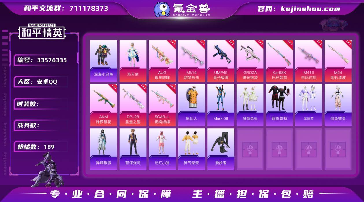 hs67672 安卓手Q-7王牌印记-2粉装-15特效枪-54262热力值-109套装-189枪皮-1卓越印记-1传奇印记 【2粉装】角色-洛天依,角色-千金淑猫 【15特效枪】AKM-绿萝繁花/5级,M762-青锋波束/5级,SCAR-L-锦绣绵绵/5级,DP-28-圣堂之誓/7级,Mk14-甜梦熊击/5级,GROZA-镜光银凌/5级,DP-28-豹影疾电/5级,M24-莲影清波/5级,Mk14-福马献瑞/5级,M416-电玩时刻/5级,Kar98K-巳巳如意/5级,AA12-G-萌骑幻想/3级,AUG-暖羊咩咩/5级,AKS-74U-森灵之息/5级,UMP45-量子极限/5级 【4稀有紫装】Mark.06,暗影哥特,深海小丑鱼,龟仙人 【109稀有时装】洛天依,千金淑猫,SS38特训,龟仙人,Mark.06,暗影哥特,深海小丑鱼,龙魂突击队,异域银装,纯白跃动,绒宝小鹅,星渊小夜曲,街头风暴,星途旅人,炽纹蛇影,冰河战士,鱼渊荷华,俏兔智灵,创世·追猎,青团波波,大橘大利,燕燕于飞,战术大师,智谋强哥,紫俏灵猫,雏菊兔兔,马上有钱,糖糖葫芦,香桃花海,蝶变,巳巳如意,湖畔霞光,棉花软糖,狂鲨锋刃,夜瞳黯灵,阳光菠萝,萌鸡速递,元气之梦,漫游都市,薄荷星砂,顶瓜瓜,蓝冰羽,恋语绒绒,青翼流星,紫幽梦,SS35特训,SS29特训,萝兰蝴蝶,SS31特训,SS33特训,SS32特训,SS36特训,都市漫游者,龙的传人,甜梦熊熊,SS37特训,SS28特训,特训学院,猎鹰,...