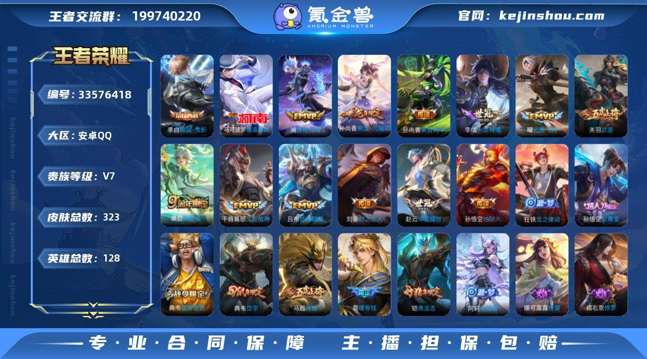 安卓QQ/非凡王者/323皮肤/128英雄/1典藏/0珍品无双/0无双/1珍品传说/13传说/93史诗/9稀有英雄 【1 珍品传说】怪盗基德 马可波罗, 【1 典藏皮肤】鸣剑·曳影 李白, 【13 传说皮肤】武圣 关羽,逐花归海 澜,地狱火 孙悟空,云鹰飞将 曜,怒海麟威 吕布,乘龙·问璇玑 孙尚香,时之恋人 刘备,久胜战神 干将莫邪,末日机甲 孙尚香,一念神魔 李信,淬星耀世 赵云,神树通天 后羿,鸣野蒿 桑启, 【93 史诗皮肤】时之奇旅 安琪拉,末日机甲 吕布,蔬乡物语 鲁班七号,紫霞仙子 露娜,百解令 蒙犽,高山流水 庄周,银河之约 李元芳,燃音魔法 高渐离,天秀·启明 杨戬,猫狗日记 大乔,德古拉伯爵 刘邦,心灵战警 亚瑟,五谷丰年 鬼谷子,无心 元歌,鬼剑武藏 宫本武藏,星夜王子 白起,瓦猫非猫 太乙真人,线条小狗 周瑜,百晓客 明世隐,摇滚巨星 嬴政,顽趣 梦奇,修罗 橘右京,魅力维加斯 妲己,黄金分割率 诸葛亮,赞萌露比 云缨,偶像歌手 王昭君,女仆咖啡 妲己,九幽镇关 项羽,晚萤 娜可露露,舞动绿茵 蔡文姬,繁星吟游 蔡文姬,暗夜贵公子 嬴政,鹰眼统帅 狄仁杰,李小龙 裴擒虎,纤云弄巧 云中君,驯魔猎人 兰陵王,金属风暴 墨子,特工魅影 百里守约,猫狗日记 孙策,原初追逐者 百里玄策,逐浪之夏 李元芳,未来纪元 赵云,黎明...