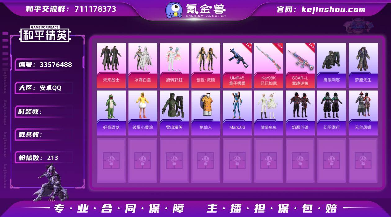 hs67864安卓手Q-6王牌印记-4粉装-5特效枪-59986热力值-172套装-213枪皮-1卓越印记