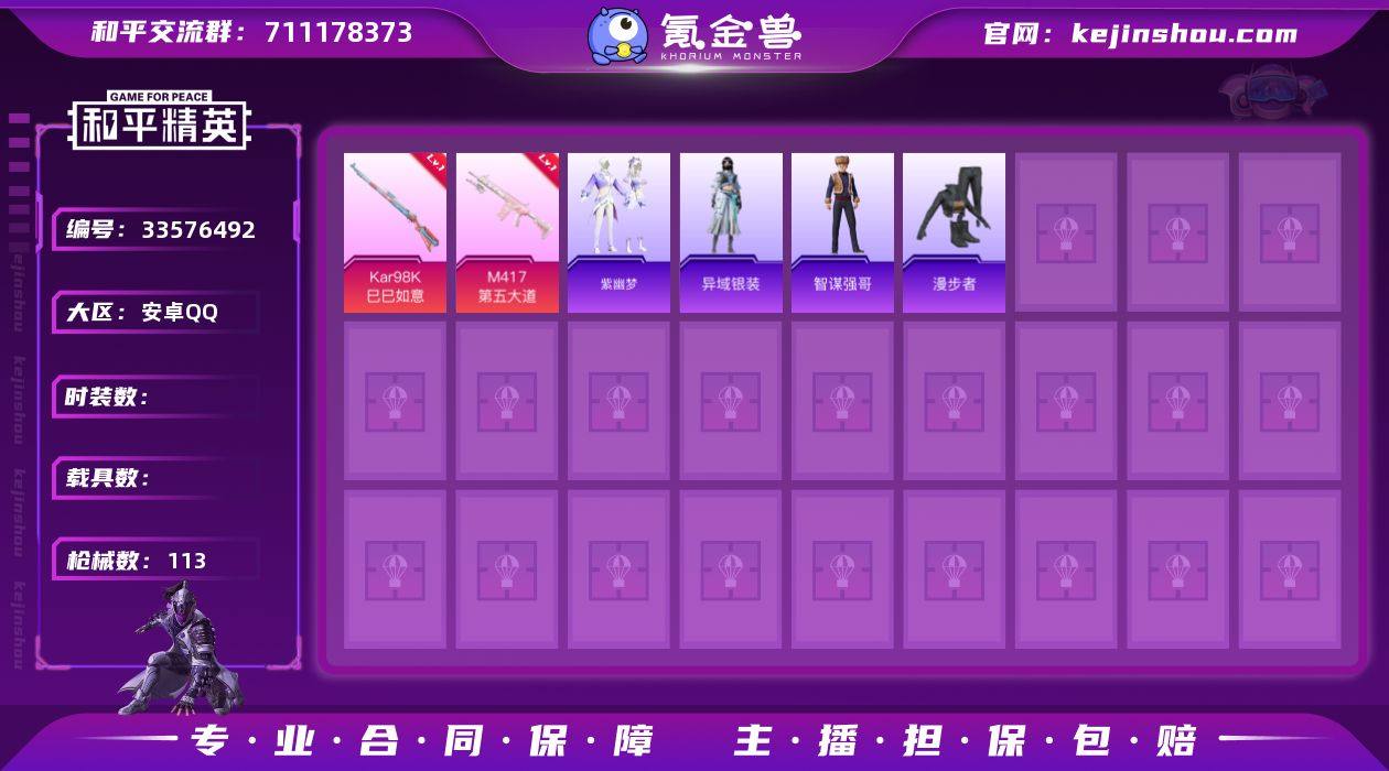 hs68550 安卓手Q-3王牌印记-2粉装-6特效枪-30982热力值-84套装-113枪皮-1卓越印记