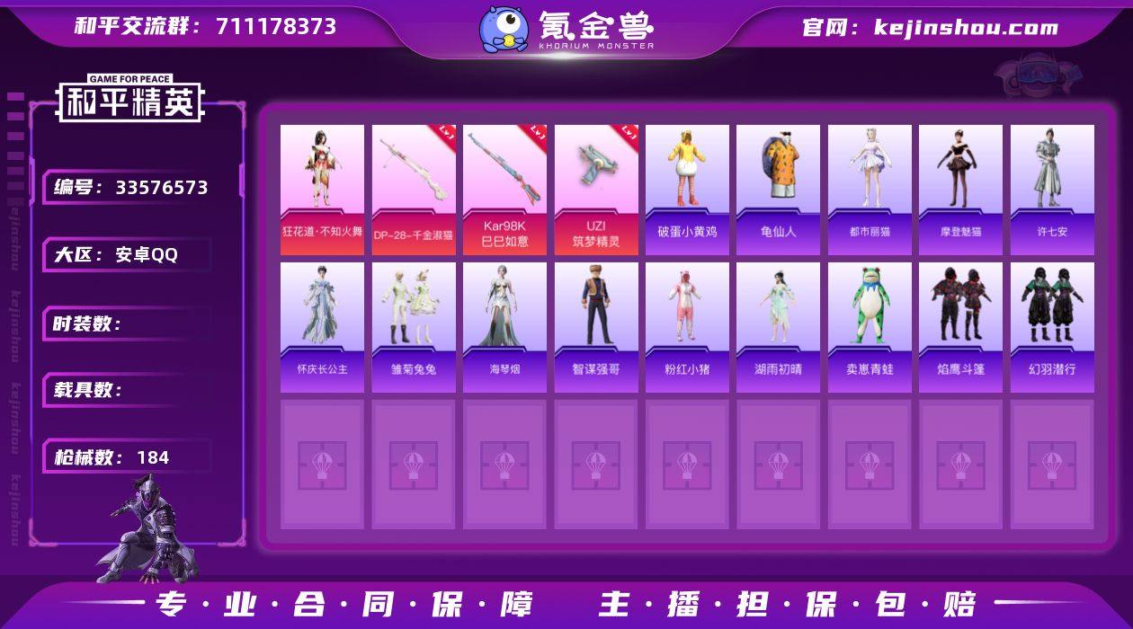hs68639 安卓手Q-5王牌印记-3粉装-7特效枪-56017热力值-154套装-184枪皮-1卓越印记