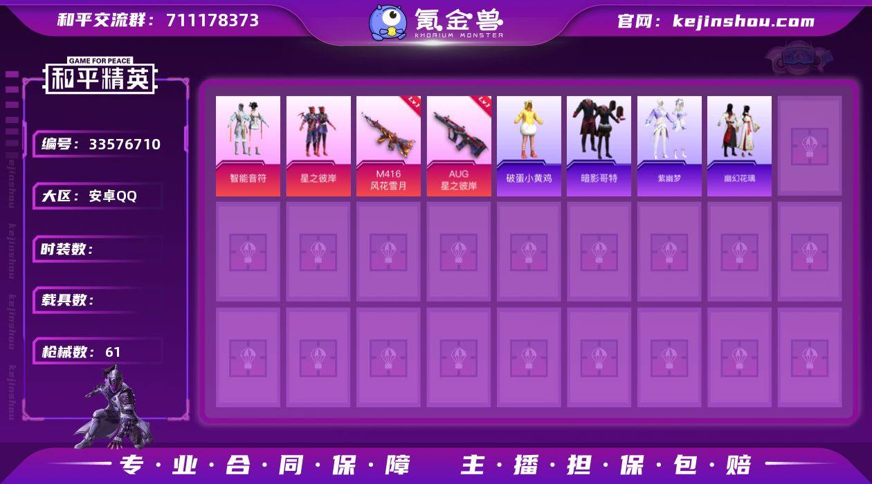 hs64925安卓手Q-1王牌印记-2粉装-5特效枪-18483热力值-42套装-61枪皮