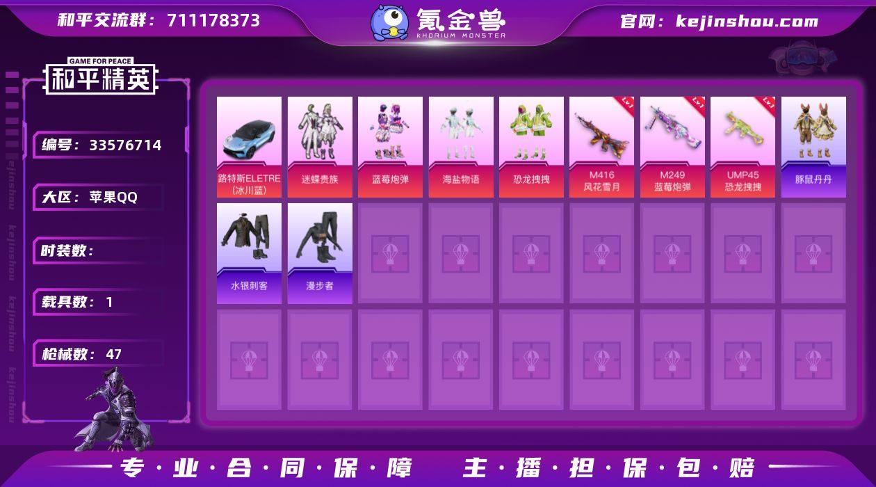 hs65422 苹果手Q-1王牌印记-4粉装-4特效枪-1载具-19149热力值-34套装-47枪皮