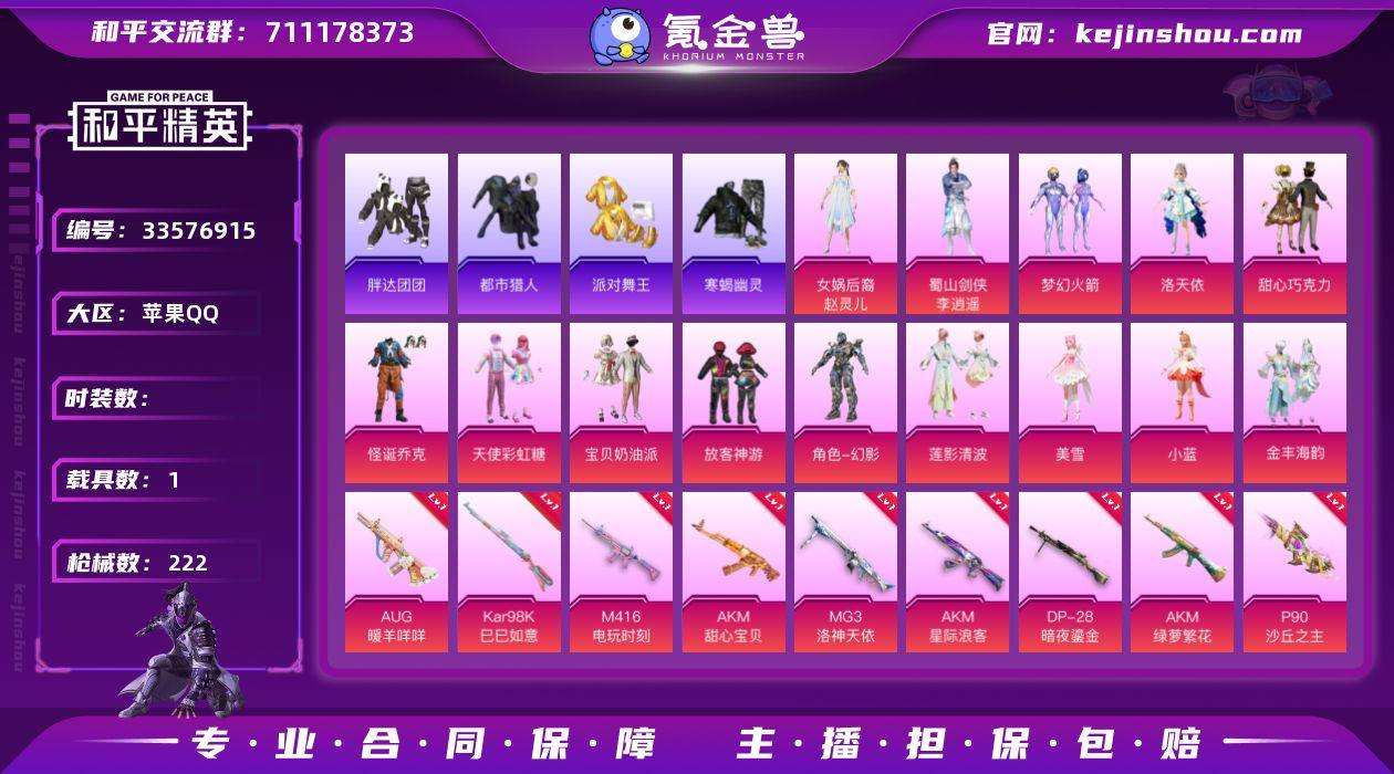 hs69986 苹果手Q-15王牌印记-13粉装-14特效枪-1载具-83804热力值-162套装-222枪皮-5卓越印记-2传奇印记 【13粉装】角色-美雪,套装-宝贝奶油派,女娲后裔-赵灵儿,套装-放客神游,角色-小蓝,套装-星穹咏叹调,角色-洛天依,套装-天使彩虹糖,套装-金丰海韵,套装-莲影清波,套装-怪诞乔克,套装-甜心巧克力,套装-梦幻火箭 【14特效枪】AKM-星际浪客/5级,DP-28-豹影疾电/5级,P90-沙丘之主/3级,AKM-绿萝繁花/5级,Kar98K-巳巳如意/5级,Mk14-福马献瑞/5级,SCAR-L-锦绣绵绵/5级,M416-电玩时刻/5级,AKM-甜心宝贝/7级,MG3-洛神天依/7级,AA12-G-萌骑幻想/2级,GROZA-巴啦啦小魔仙/7级,DP-28-暗夜鎏金/5级,AUG-暖羊咩咩/5级 【8稀有紫装】都市猎人,Mark.06,派对舞王,寒蝎幽灵,暗影哥特,胖达团团,龟仙人,临安公主 【1稀有载具】黑曜夜骑 【161稀有时装】甜心巧克力,梦幻火箭,怪诞乔克,放客神游,赵灵儿,宝贝奶油派,天使彩虹糖,洛天依,美雪,星穹咏叹调,莲影清波,金丰海韵,小蓝,迅捷龙虾,都市猎人,胖达团团,寒蝎幽灵,龟仙人,Mark.06,暗影哥特,派对舞王,狂沙舞者,石蕴玉辉,龙魂突击队,小熊娃娃,异域银装,摩登魅猫,街头风暴,星途旅人,冰河战士,鱼渊荷华,青团波波,大橘大利,燕燕于飞,梦域神使,临安公主,战...