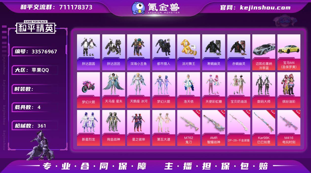 hs70093 苹果手Q-19王牌印记-有战神框-16粉装-12特效枪-4载具-热力值-298套装-361枪皮-3卓越印记-2传奇印记 【16粉装】角色-智耀战神,角色-荧海星豚,套装-数码大师,角色-千金淑猫,人物-小舞·雪昙,角色-洛天依,套装-新星烈龙,套装-梦幻火箭,角色-天鹅座 冰河,套装-第五大道,套装-绚金战神,套装-天使彩虹糖,套装-星之彼岸,角色-天马座 星矢,套装-宝贝奶油派,套装-缤纷油彩 【12特效枪】Kar98K-巳巳如意/5级,M762-鬼刀/6级,SCAR-L-梦幻火箭/7级,AUG-星之彼岸/7级,SCAR-L-锦绣绵绵/5级,M416-电玩时刻/5级,AMR-智耀战神/5级,UMP45-萌骑冒险/2级,Mk14-福马献瑞/5级,DP-28-豹影疾电/5级,Vector-环太平洋/7级,DP-28-千金淑猫/5级 【16稀有紫装】都市猎人,Mark.06,8号机,派对舞王,寒蝎幽灵,赤蝎幽灵,暗影哥特,深海小丑鱼,浪漫天命,胖达圆圆,浪漫波比,胖达团团,金羽特工,小丑鱼,龟仙人,萌熊伴侣背包(3级) 【4稀有载具】宝马M4(圣保罗黄),迈凯伦塞纳(冷萃蓝),霜月冰狼,双人摩托-梦幻火箭 【295稀有时装】梦幻火箭,缤纷油彩,第五大道,新星烈龙,宝贝奶油派,天使彩虹糖,洛天依,绚金战神,小舞·雪昙,千金淑猫,智耀战神,荧海星豚,天马座 星矢,天鹅座 冰河,数码大师,星之彼岸,LGD追光队服,迅捷龙...