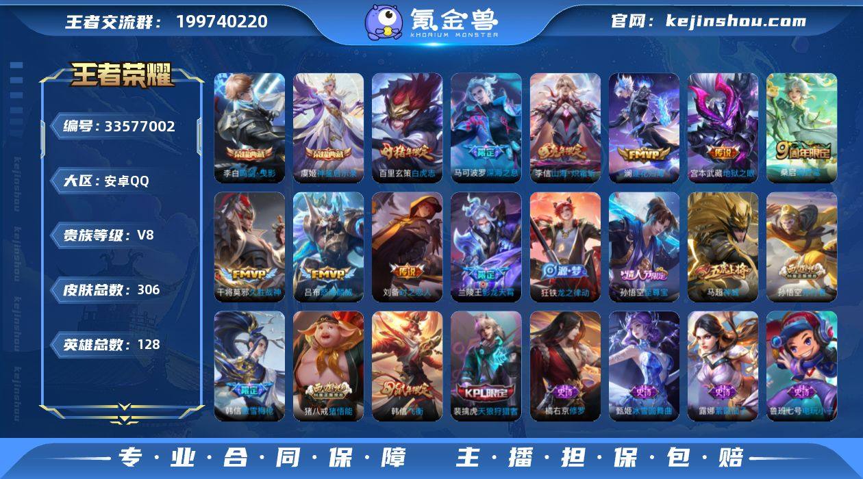 安卓QQ/荣耀王者/306皮肤/128英雄/2典藏/0珍品无双/0无双/0珍品传说/13传说/79史诗/9稀有英雄 【2 典藏皮肤】鸣剑·曳影 李白,神鉴启示录 虞姬, 【13 传说皮肤】启明星使 虞姬,逐花归海 澜,白虎志 百里玄策,深海之息 马可波罗,影龙天霄 兰陵王,地狱之眼 宫本武藏,怒海麟威 吕布,时之恋人 刘备,久胜战神 干将莫邪,山海·炽霜斩 李信,踏浪归 韩信,神树通天 后羿,鸣野蒿 桑启, 【79 史诗皮肤】电玩小子 鲁班七号,末日机甲 吕布,超元猎域 百里玄策,紫霞仙子 露娜,高山流水 庄周,德古拉伯爵 刘邦,心灵战警 亚瑟,五谷丰年 鬼谷子,鬼剑武藏 宫本武藏,百相守梦 黄忠,星夜王子 白起,线条小狗 周瑜,百晓客 明世隐,摇滚巨星 嬴政,顽趣 梦奇,修罗 橘右京,拒霜思 嫦娥,偶像歌手 王昭君,荣光圣徽 蒙恬,女仆咖啡 妲己,九幽镇关 项羽,星界游侠 暃,猪悟能 猪八戒,舞动绿茵 蔡文姬,暗夜贵公子 嬴政,鹰眼统帅 狄仁杰,飞衡 韩信,孙行者 孙悟空,李小龙 裴擒虎,纤云弄巧 云中君,龙骑士 墨子,降魔 墨子,金属风暴 墨子,傲雪梅枪 韩信,特工魅影 百里守约,猫狗日记 孙策,原初追逐者 百里玄策,逐浪之夏 李元芳,未来纪元 赵云,灵蛊蚀心 扁鹊,黎明之约 雅典娜,魔术师 狄仁杰,热力回旋 百里玄策,龙之律动 狂铁,...