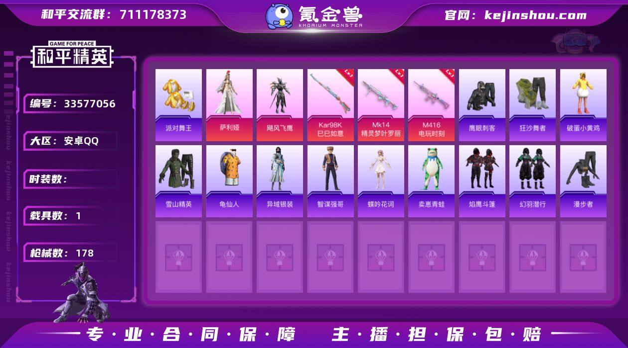hs67893 安卓手Q-4王牌印记-3粉装-8特效枪-1载具-50402热力值-105套装-178枪皮-2卓越印记-1传奇印记