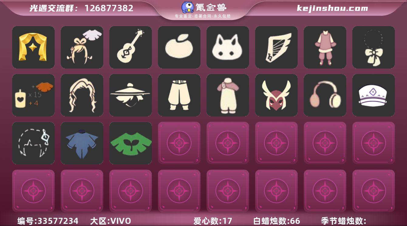账号类型: 手机账号 季节已毕业: 表演季 完成地图: 晨岛,霞谷 珍稀物品: 白枭 礼包: 绊爱,吉他,橘子,兔子,竖琴,新年裤,蝴蝶结,创始人 裤子: 武士裤,背带裤 面具: 黄眉企鹅面具 面饰: 红耳机 发型: 若笠,虚荣 头饰: 蓝色音乐会,平顶帽 斗篷: 绿芽,燕尾斗篷 亮点: 【优质装备】:表演季,白枭(帝企鹅发),武士裤,黄眉企鹅面具,燕尾斗篷,绊爱(绊爱斗篷)(绊爱礼包),红耳机,吉他(音韵吉他)(白吉他),新年裤(瑞气服饰),晨岛,霞谷,若笠(箬笠),竖琴(雏鸟之琴),蝴蝶结(大蝴蝶结),创始人(创始人斗篷),兔子(玉兔头饰)(玉兔发饰)(兔子发饰),橘子(大橘大利)