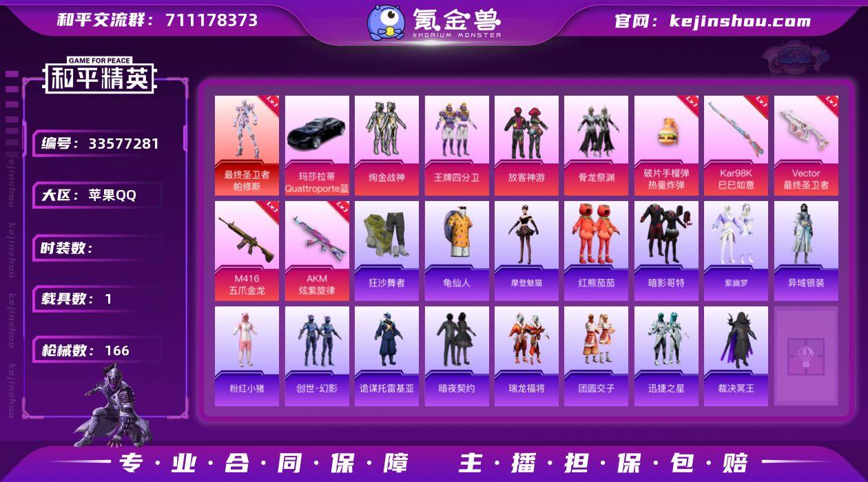 hs70090 苹果手Q-10王牌印记-有战神框-1红装-5粉装-7特效枪-1载具-55371热力值-111套装-166枪皮-5卓越印记-5传奇印记 【1红装】最终圣卫者-帕修斯/3级 【5粉装】套装-绚金战神,套装-放客神游,套装-幻彩电音,套装-骨龙祭渊,套装-王牌四分卫 【7特效枪】12-雪月幻音/2级,破片手榴弹-热量炸弹/7级,DP-28-豹影疾电/5级,Kar98K-巳巳如意/5级,M416-五爪金龙/5级,Vector-最终圣卫者/3级,AKM-炫紫旋律/5级 【2稀有紫装】暗影哥特,龟仙人 【1稀有载具】玛莎拉蒂Quattroporte(夜幕蓝) 【111稀有时装】帕修斯/3级,放客神游,绚金战神,幻彩电音,王牌四分卫,创世·幻影,骨龙祭渊,龟仙人,暗影哥特,狂沙舞者,申公豹,红熊茄茄,海上生明月,异域银装,摩登魅猫,街头风暴,鱼渊荷华,创世·追猎,青团波波,大橘大利,燕燕于飞,战术大师,糖糖葫芦,向日葵先生,巳巳如意,粉恋花,彩虹兔,霓虹热舞,雪绒豹,星影赞美诗,朱霞炽焰,绛羽幽主,游乐,凌霄紫焰,擎苍青焰,炫彩糖果,萌鸡速递,元气之梦,薄荷星砂,云朵鹅,顶瓜瓜,蓝冰羽,恋语绒绒,紫幽梦,SS35特训,SS29特训,SS31特训,SS33特训,SS32特训,SS16特训,暴风机械师,时空追击者,裁决冥王,暗夜傀儡,福星高照,暗夜契约,都市漫游者,虎虎生威吉莉,夏日音浪,萌黄之夏,白色...