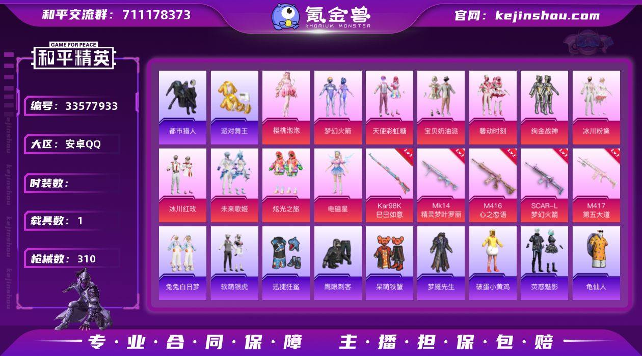 hs67844安卓手Q-10王牌印记-16粉装-10特效枪-1载具-93761热力值-232套装-310枪皮-1卓越印记 【16粉装】角色-荧海星豚,套装-宝贝奶油派,套装-绚金战神,角色-电磁星,套装-冰川粉黛,套装-馨动时刻,套装-炫光之旅,套装-天使彩虹糖,角色-时光之吻,角色-鸢尾珑雾,套装-未来歌姬,套装-梦幻火箭,人物-小舞·雪昙,角色-千金淑猫,套装-冰川红玫,角色-樱桃泡泡 【10特效枪】Mk14-福马献瑞/1级,Kar98K-巳巳如意/5级,SCAR-L-梦幻火箭/6级,M249-绝对恒星/4级,M416-心之恋语/7级,Mk14-精灵梦叶罗丽/6级,DP-28-豹影疾电/5级,M417-第五大道/1级,12-雪月幻音/2级,UMP45-萌骑冒险/5级 【9稀有紫装】都市猎人,派对舞王,2P战斗服款,2B战斗服款,暗影哥特,浪漫天命,迅捷狂鲨,小丑鱼,龟仙人 【1稀有载具】暮色幽蹄 【1僚机】僚机-萌兔起飞 【227稀有时装】梦幻火箭,宝贝奶油派,天使彩虹糖,绚金战神,小舞·雪昙,千金淑猫,馨动时刻,樱桃泡泡,荧海星豚,炫光之旅,冰川粉黛,冰川红玫,未来歌姬,时光之吻,电磁星,迅捷龙虾,SS38特训,都市猎人,浪漫天命,龟仙人,暗影哥特,小丑鱼,迅捷狂鲨,派对舞王,2B战斗服款,2P战斗服款,兔兔白日梦,自由猎手,萌趣咩咩,软萌银虎,荧光绘影,龙魂突击队,异域银装,摩登魅猫,白糯汤圆,...
