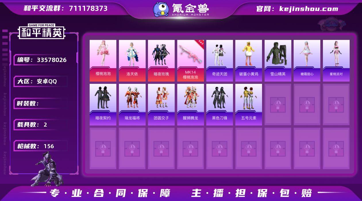 hs59228 安卓手Q-6王牌印记-1红装-4粉装-4特效枪-2载具-48550热力值-94套装-156枪皮-1卓越印记 【1红装】灵猫魔法师-塞维尔/4级 【4粉装】套装-暗夜玫瑰,角色-洛天依,角色-荧海星豚,角色-樱桃泡泡 【4特效枪】DP-28-豹影疾电/5级,Mk14-樱桃泡泡/2级,MG-36-沧焰双生/4级,Vector-绯穹魔姬/3级 【1稀有紫装】雪山精英 【2稀有载具】黑曜夜骑,保时捷Panamera(星辰紫) 【94稀有时装】洛天依,塞维尔/4级,荧海星豚,SS35特训,午间小调,SS33特训,SS36特训,彩虹兔,琴音绮想,雪绒豹,画境星梦,SS34特训,朱霞炽焰,夜瞳黯灵,绛羽幽主,雪山精英,游乐,美羊羊,凌霄紫焰,无面战甲,擎苍青焰,炫彩糖果,萌鸡速递,元气之梦,书海巡游,风迹短诗,薄荷星砂,秘语星愿,云朵鹅,暗夜玫瑰,樱桃泡泡,蜜桃派对,糖霜甜心,迷域探索者,醒狮腾龙,拳皇97八神庵,金鼠迎春,黑色刀锋,福星高照,暗夜契约,虎虎生威吉莉,夏日音浪,五号元素,SS8特训,众神之王,智慧之神,蓝色运动,SS9特训,湖蓝色名流,酷潮明星,绯格组合,黑色伏地魔,骑行爱好者,蓝色守护者,长空猛禽,竞技勇士朋克,特战装甲,怒火燎原,魅力单车,传奇侦探,极地朋克,幻世战舞者,牛气满满,萌趣咩咩,娇憨猪猪,荷畔雨呱,麻辣教官,破蛋小黄鸡,疯狂小兔子,北国孤狼,SS6特...